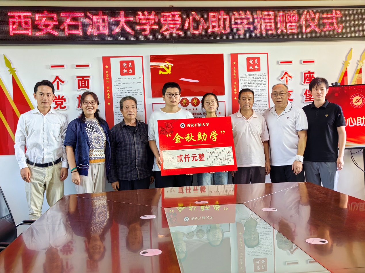 8月23日,西安石油大學工會主席袁玎一行赴永壽縣堅固村開展“金秋助學”活動,為堅固村今年考取本科的兩名學生進行了助學金發(fā)放,以示鼓勵。工會副主席吳民生,駐村工作隊,村兩委班子,學生和家長等11人出席儀式,儀式由第一書記聶康晨主持。