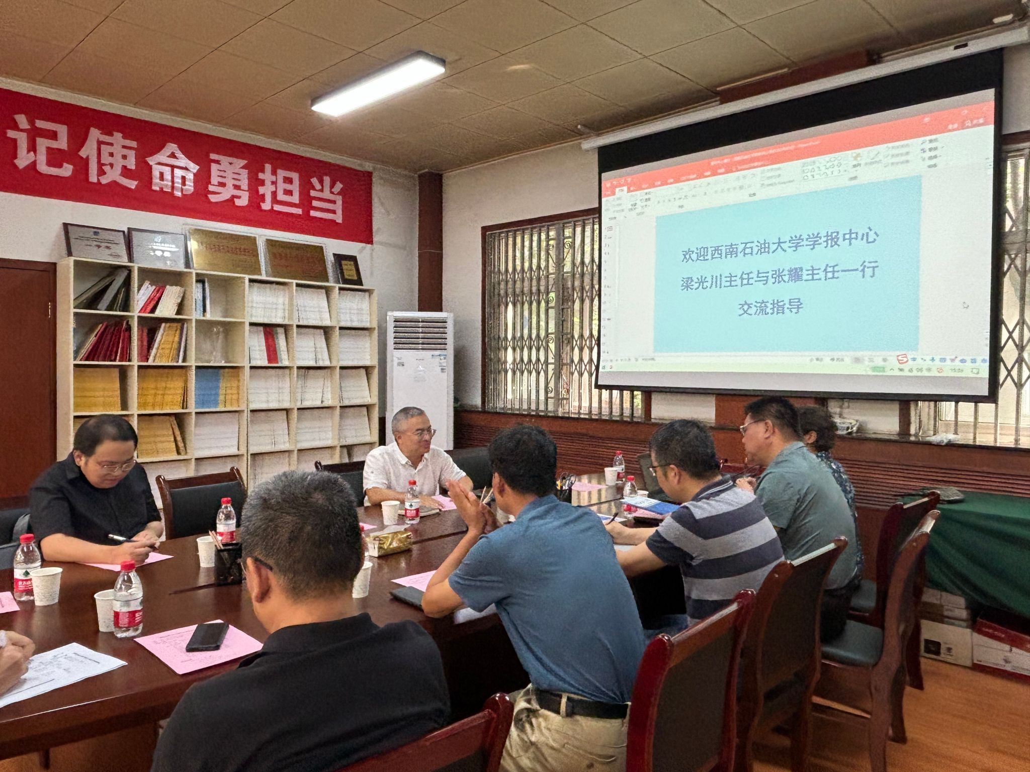 期刊中心主任蔣華義致歡迎辭,對梁主任一行來訪交流表示熱烈歡迎。蔣華義指出,西南石油大學學報中心近年來在梁主任的領(lǐng)導下,期刊獲得長足發(fā)展,取得顯著成就,3本期刊的辦刊成果、重點工作舉措以及在服務(wù)學術(shù)傳播、服務(wù)人才培養(yǎng)等方面做出的努力值得認真學習,希望通過此次交流學習可以獲取更多的前沿理念。希望兩個單位今后在期刊建設(shè)與發(fā)展方面深化合作,不斷加強業(yè)務(wù)深度交流,著力構(gòu)建優(yōu)勢互補、資源共享、共同發(fā)展的新格局,以實現(xiàn)期刊高質(zhì)量共贏式發(fā)展。