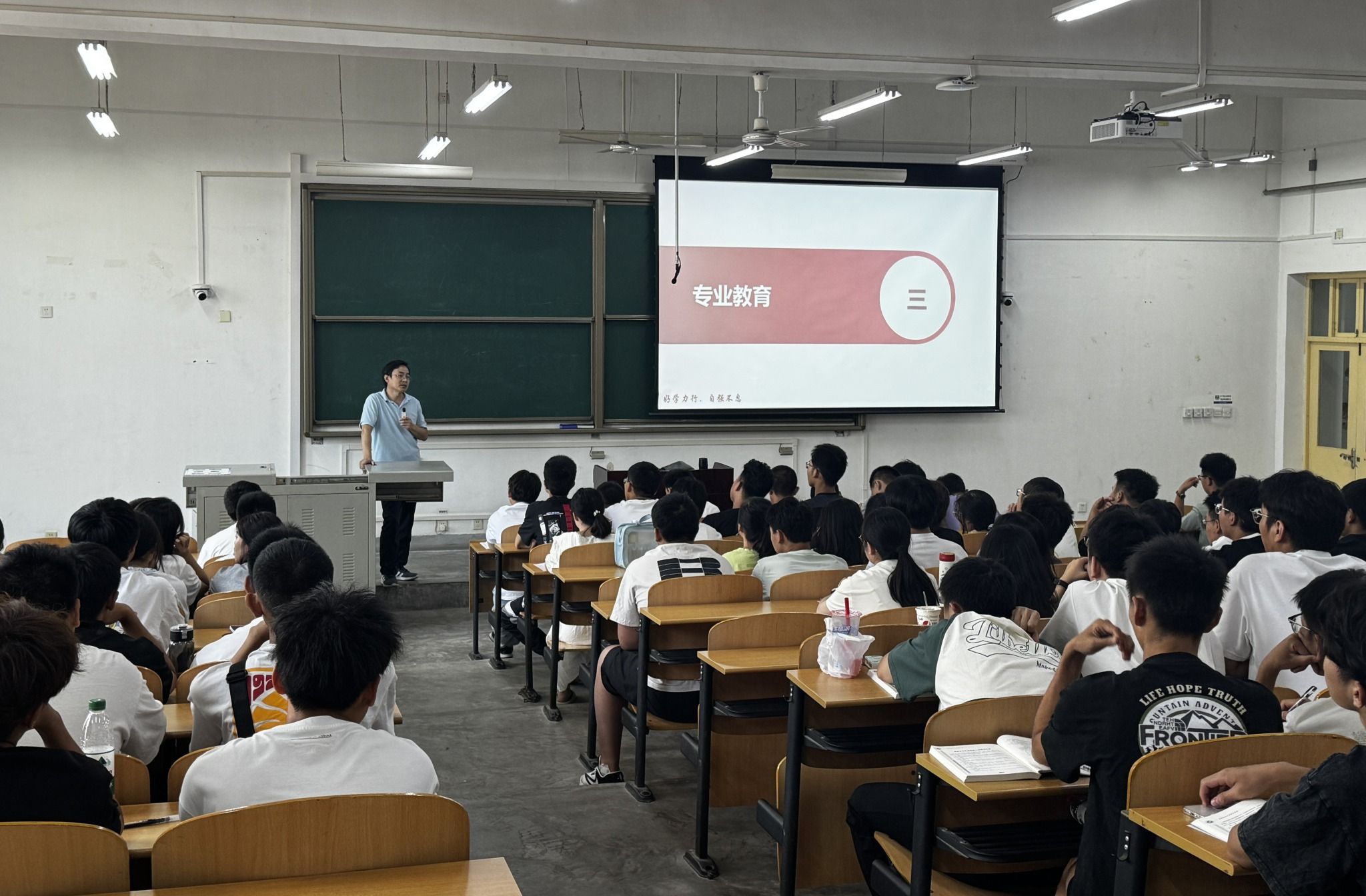 馮德全、劉孝艷從專業(yè)簡介、培養(yǎng)方案、關鍵時間節(jié)點三個方面,圍繞選課、考試、社會實踐、就業(yè)等問題,全方位解讀了2024版本科人才培養(yǎng)方案。馮德全強調了數(shù)學和物理在科學研究中的基礎性作用,鼓勵新生們要珍惜大學時光,努力學習專業(yè)知識,培養(yǎng)嚴謹?shù)目茖W態(tài)度和扎實的科研能力。劉孝艷詳細介紹了數(shù)學分析、高等代數(shù)、概率論與數(shù)理統(tǒng)計等核心課程的重要性,并分享了近年來數(shù)學專業(yè)在科研創(chuàng)新、學科競賽等方面的豐碩成果。她鼓勵新生要盡快地去制定明確的目標,堅定不移朝著既定目標勇毅前行。
