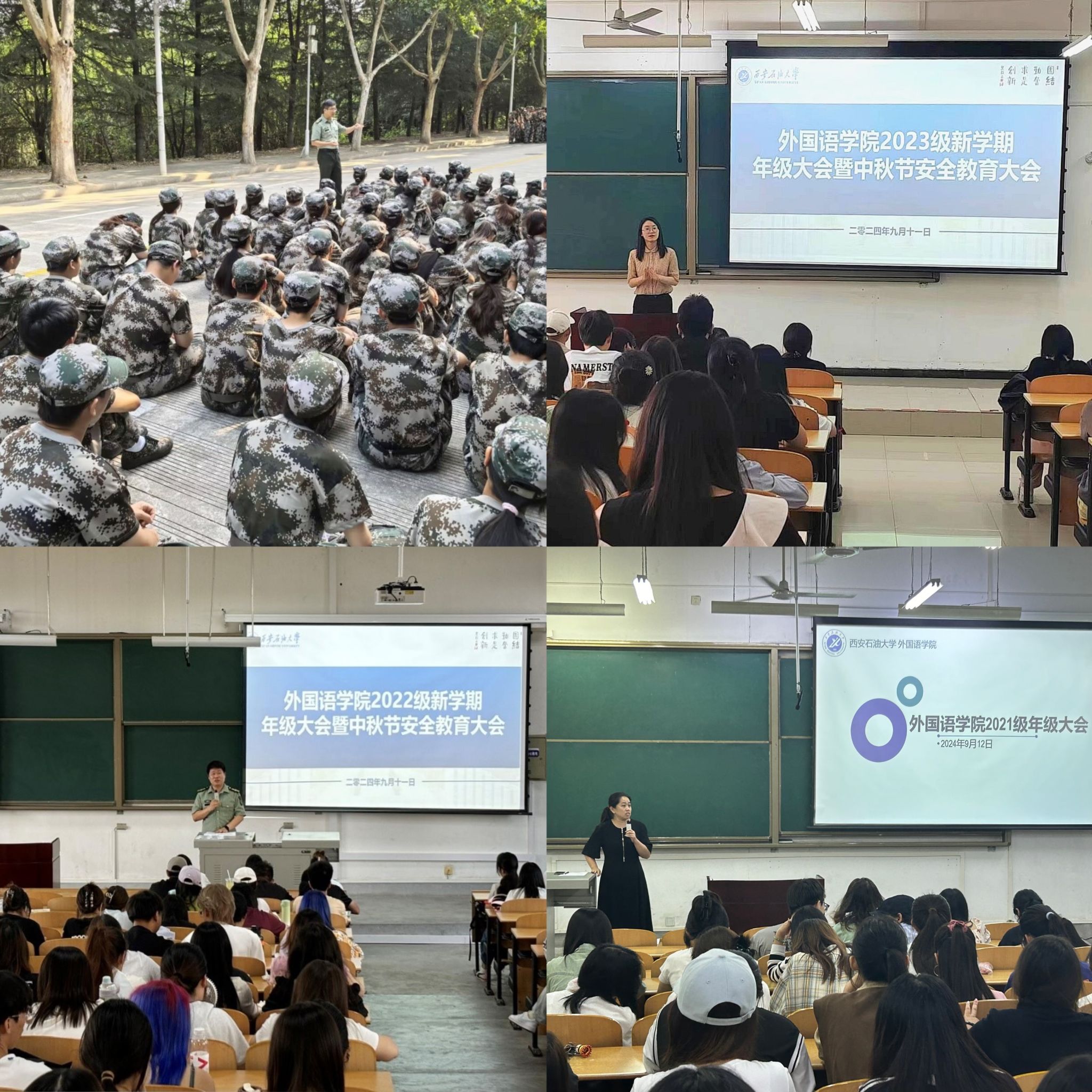 為貫徹落實(shí)學(xué)校各項(xiàng)工作要求,做好新學(xué)期各項(xiàng)學(xué)生教育管理服務(wù)工作,提高學(xué)生安全意識(shí)。近期,外國(guó)語(yǔ)學(xué)院各年級(jí)在鄠邑校區(qū)A234、B121、B112等分別召開新學(xué)期年級(jí)大會(huì)。