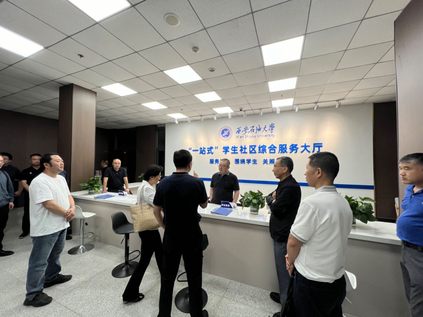 校黨委書記常江、校黨委副書記張木走訪了“一站式”學(xué)生服務(wù)大廳,詳細(xì)了解服務(wù)大廳規(guī)劃布局和管理模式等學(xué)生社區(qū)各項(xiàng)建設(shè)情況。