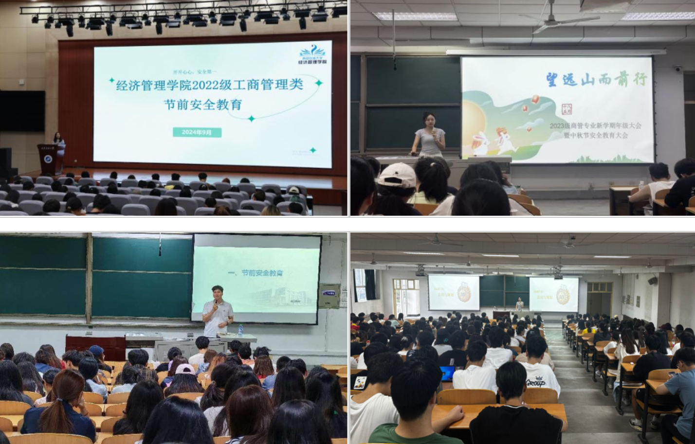 為切實做好假期學生安全教育管理工作,提升學生安全意識,確保全體學生平安愉快地度過中秋佳節(jié)。9月10日-13日,經(jīng)濟管理學院各年級輔導員有序召開中秋假期安全教育大會,通過多種渠道開展教育工作,使學生在思想上重視安全、行為上落實安全,讓假期安全教育切實入腦入心。