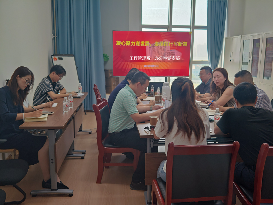 9月13日上午,土木工程學(xué)院工程管理系、辦公室教工黨支部在雁塔校區(qū)東方石油樓1105召開了“凝心聚力謀發(fā)展,賡續(xù)前行譜新篇”為主題的支部大會,專題研討學(xué)科建設(shè)。學(xué)院黨委書記賈莉娜以普通黨員的身份參會,黨支部全體黨員參加會議。會議由黨支部書記牛波主持。