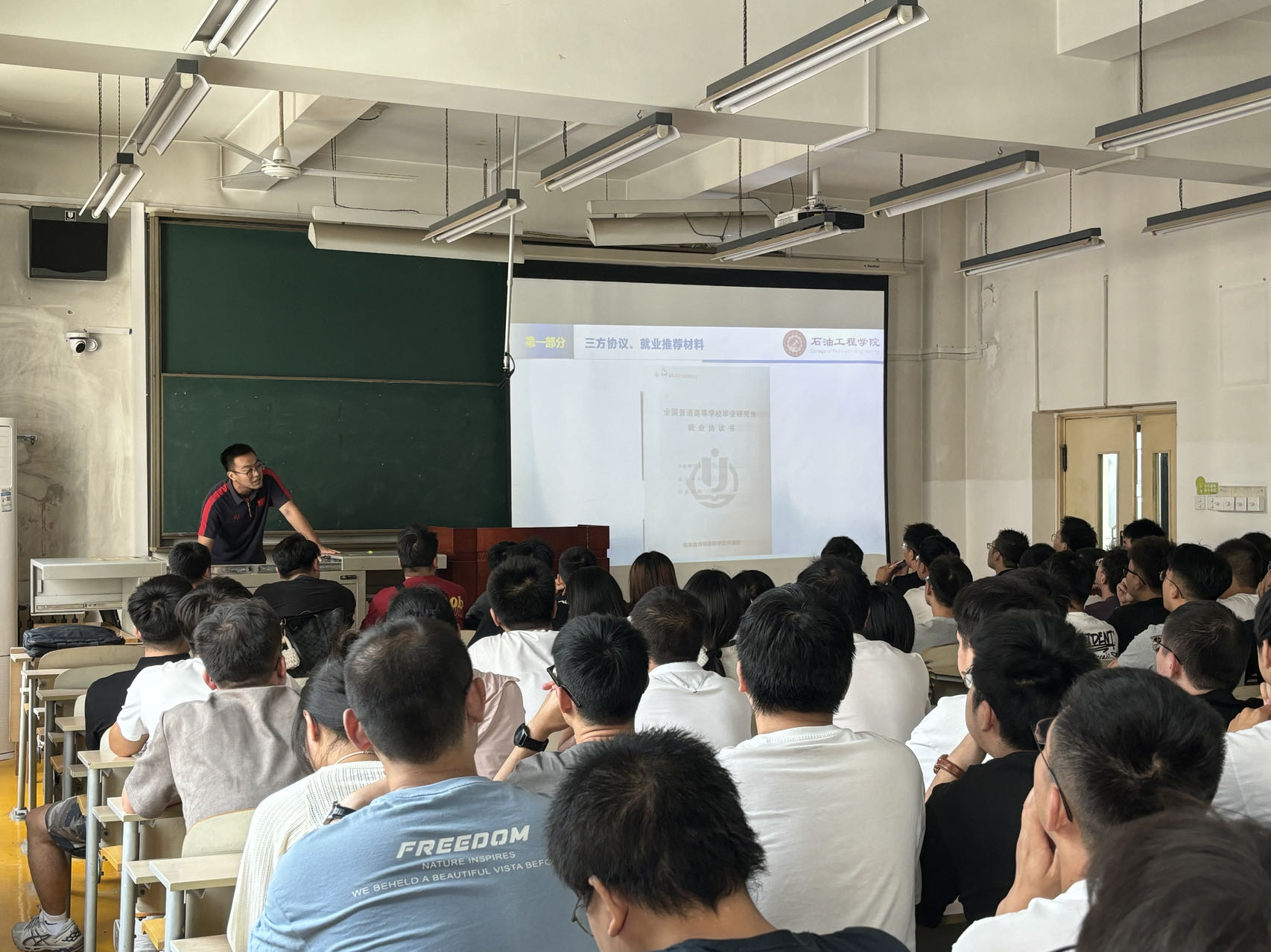 為積極應(yīng)對下的嚴峻就業(yè)形勢,9月14日上午,石油工程學(xué)院于雁塔校區(qū)第二教學(xué)樓1006教室開展2025屆畢業(yè)生就業(yè)考博動員大會,輔導(dǎo)員宋興淼主持會議,2025屆全體碩士畢業(yè)生參會。