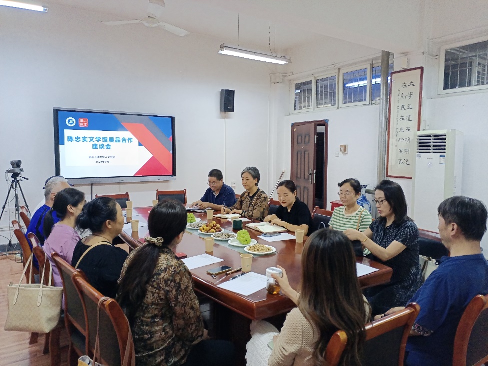 自我校面向全社會征集陳忠實文學館展品公告發(fā)布以來,受到了社會各界的關(guān)注。經(jīng)過前期的溝通走訪,9月18日下午,人文學院在雁塔校區(qū)華油能源樓813會議室組織召開了陳忠實文學館展品合作座談會。此次座談會邀請了陜西文學收藏界的藏友王扣勞、王貴強,剪紙藝術(shù)家王海英、王強,畫家賀正法等人。人文學院黨委書記余小勇、院長方亭、教授王新建、教授柯卓英及陳忠實文學館籌備組的部分老師參加了座談,宣傳部副部長高黎也應邀出席。