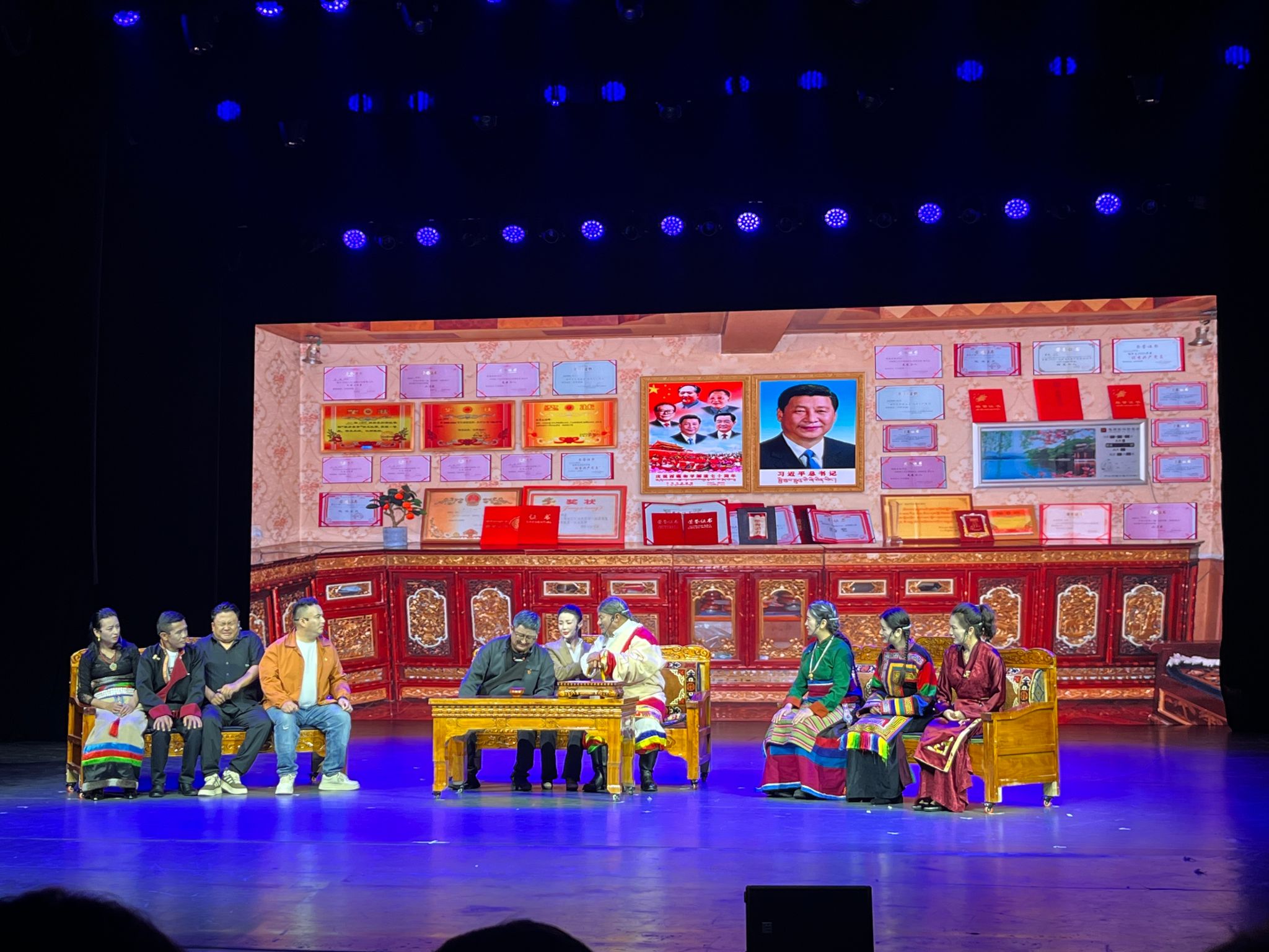 話劇充分展示在陜西省大力支持下阿里地區(qū)文化文藝事業(yè)取得的顯著成效。演出由中共阿里地區(qū)委員會、阿里地區(qū)行政公署主辦,中共阿里地委宣傳部承辦。話劇描述了阿里地區(qū)一個藏族家庭三代人在易地搬遷過程中,面對產(chǎn)生的矛盾與沖突,通過溝通、交流,最終以舉手表決的方式達成舉家搬遷共識的故事。生動體現(xiàn)了在黨的領(lǐng)導(dǎo)下,阿里地區(qū)人民聽黨話、感黨恩、跟黨走的信心與決心。演出中既有令人捧腹的劇情,又有發(fā)人深省的瞬間,跌宕起伏的故事情節(jié)、鮮活飽滿的人物塑造、特色鮮明的舞美設(shè)計,贏得了現(xiàn)場觀眾的陣陣掌聲。