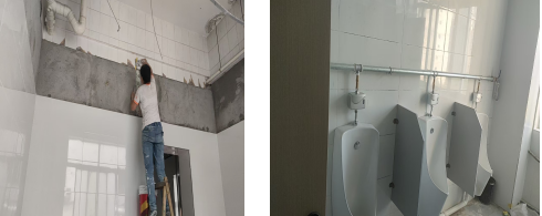 2.衛(wèi)生間改造。為改善教學(xué)樓衛(wèi)生間設(shè)施老化、滲漏水嚴(yán)重、衛(wèi)生狀況差、水壓不足等問(wèn)題,暑假期間對(duì)教學(xué)樓部分衛(wèi)生間進(jìn)行改造。主要改造內(nèi)容為對(duì)衛(wèi)生間地面、防水、小便器、潔具、上下水、排風(fēng)、洗漱臺(tái)等進(jìn)行改造。本次共涉及衛(wèi)生間9間。