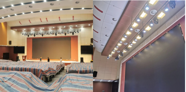 6.弘石報(bào)告廳燈光改造。為提升弘石報(bào)告廳的照明效果,滿足會(huì)議、演講、演出等活動(dòng)需求,后勤處對(duì)燈光進(jìn)行了改造。根據(jù)不同場(chǎng)景設(shè)計(jì)了燈光布局,確保照明清晰、均勻、無(wú)陰影。采用柔和光線和合理色溫,避免眩光,提升視覺(jué)舒適度,并選用節(jié)能燈具,降低能耗。