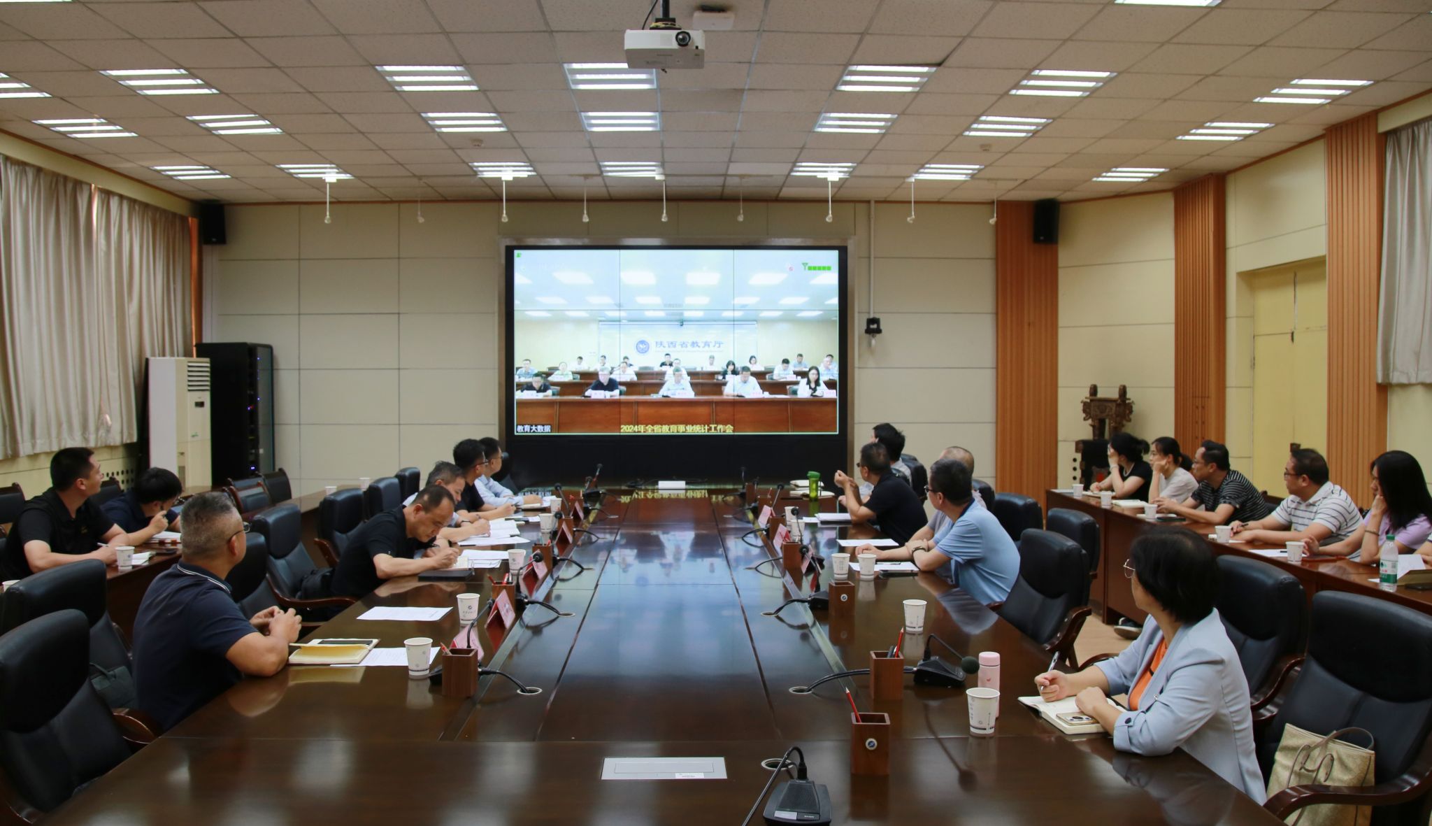 會(huì)前,全體與會(huì)人員在我校分會(huì)場參加了2024年全省教育事業(yè)統(tǒng)計(jì)工作視頻會(huì)。