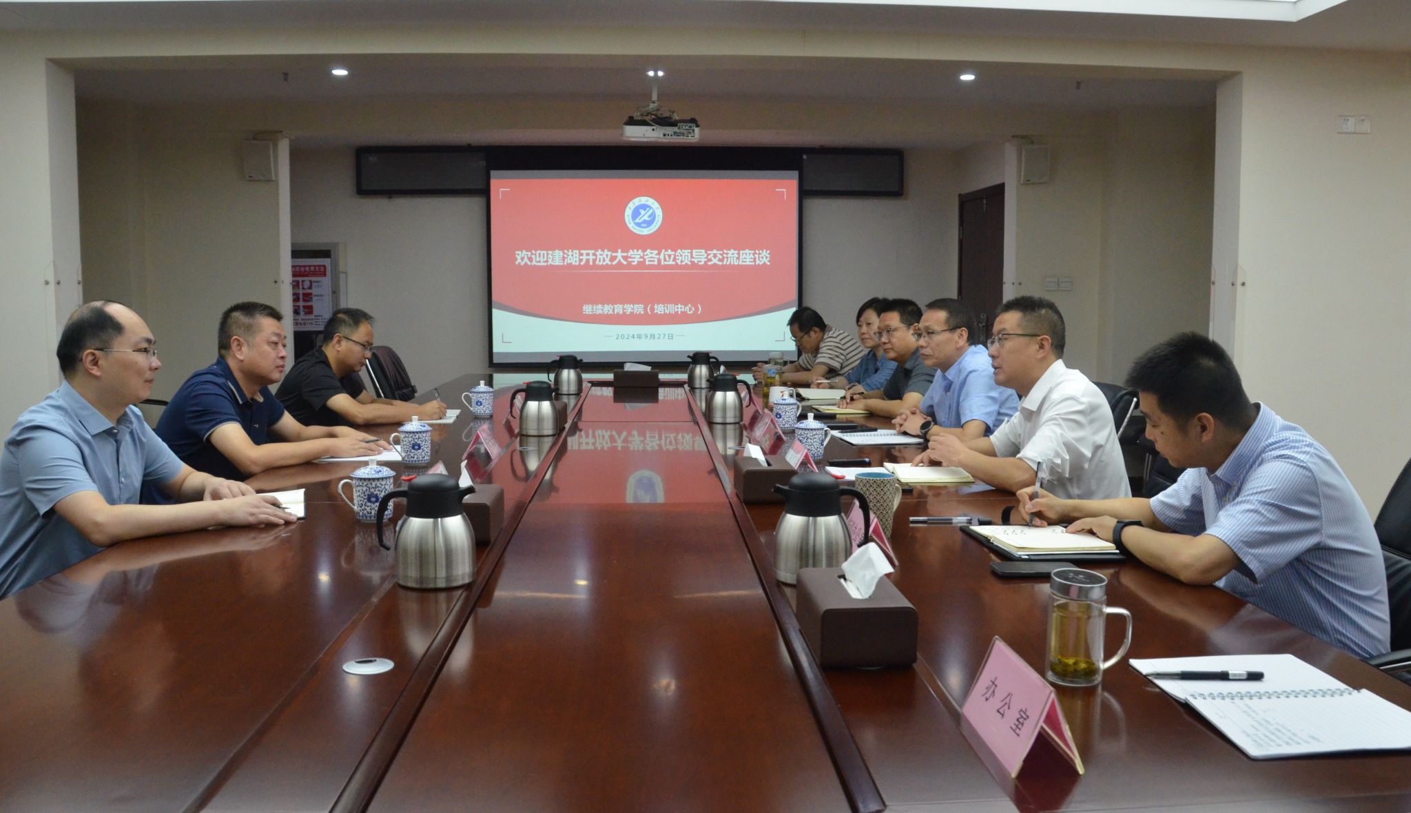 朱長安對學(xué)院的熱情接待表示感謝,并簡要介紹了本次來訪的目的,并從學(xué)校發(fā)展歷程、師資隊伍建設(shè)、學(xué)歷繼續(xù)教育招生、人才培養(yǎng)等方面介紹了建湖開放大學(xué)的基本情況。他期待未來雙方能建立更加密切的合作關(guān)系,在同等學(xué)力申請碩士學(xué)位招生培養(yǎng)、學(xué)歷繼續(xù)教育教學(xué)點等方面取得更大的合作成果,不斷推動雙方合作走深走實。