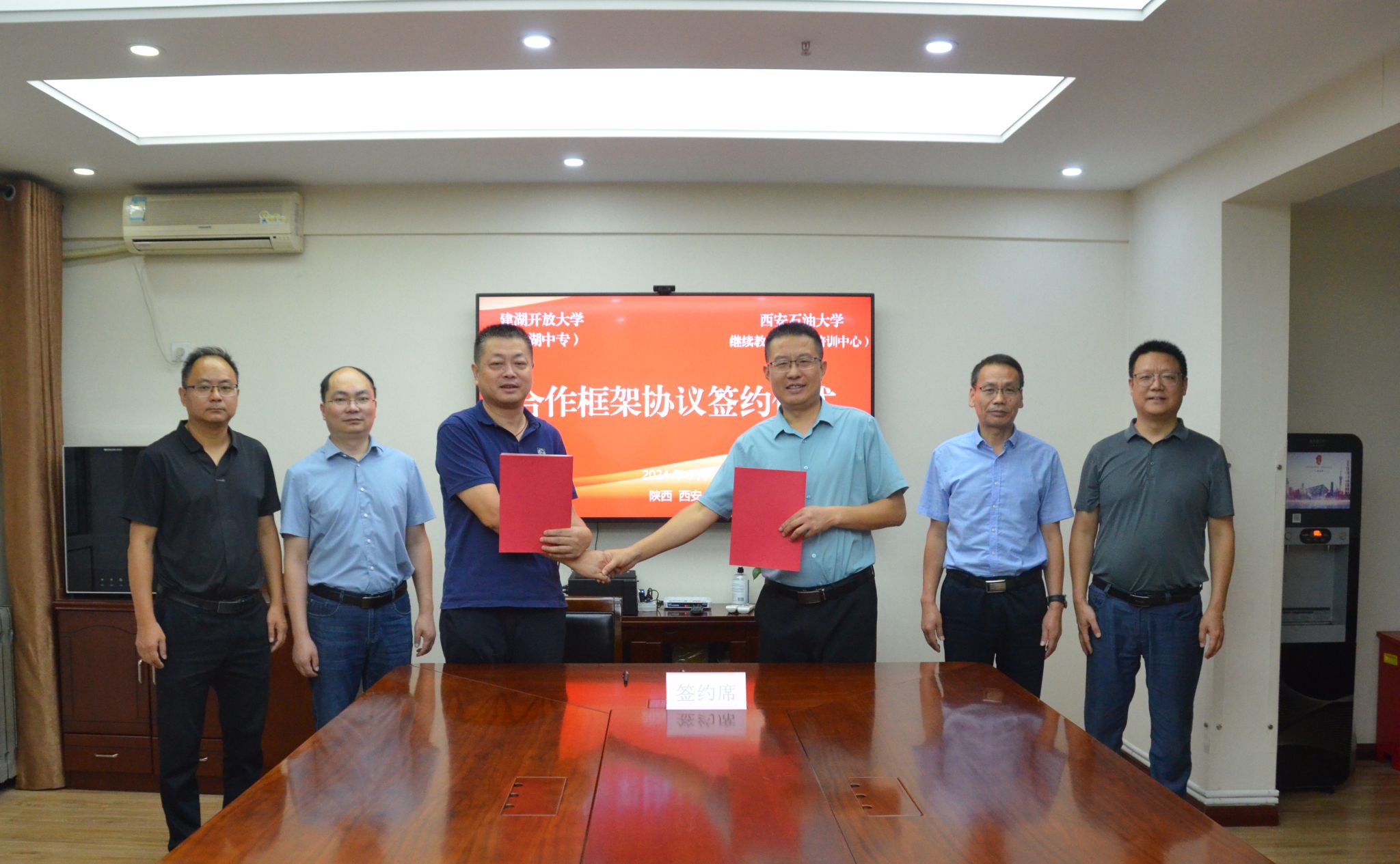 9月27日下午,繼續(xù)教育學(xué)院(培訓(xùn)中心)與建湖開放大學(xué)簽署合作框架協(xié)議。繼續(xù)教育學(xué)院黨總支書記張凌寒、副院長劉小波,建湖開放大學(xué)黨委書記朱長安、培訓(xùn)處主任凌紅兵、繼續(xù)教育學(xué)院主任管茂年出席簽約儀式。我校繼續(xù)教育學(xué)院院長林紅先主持簽約儀式。