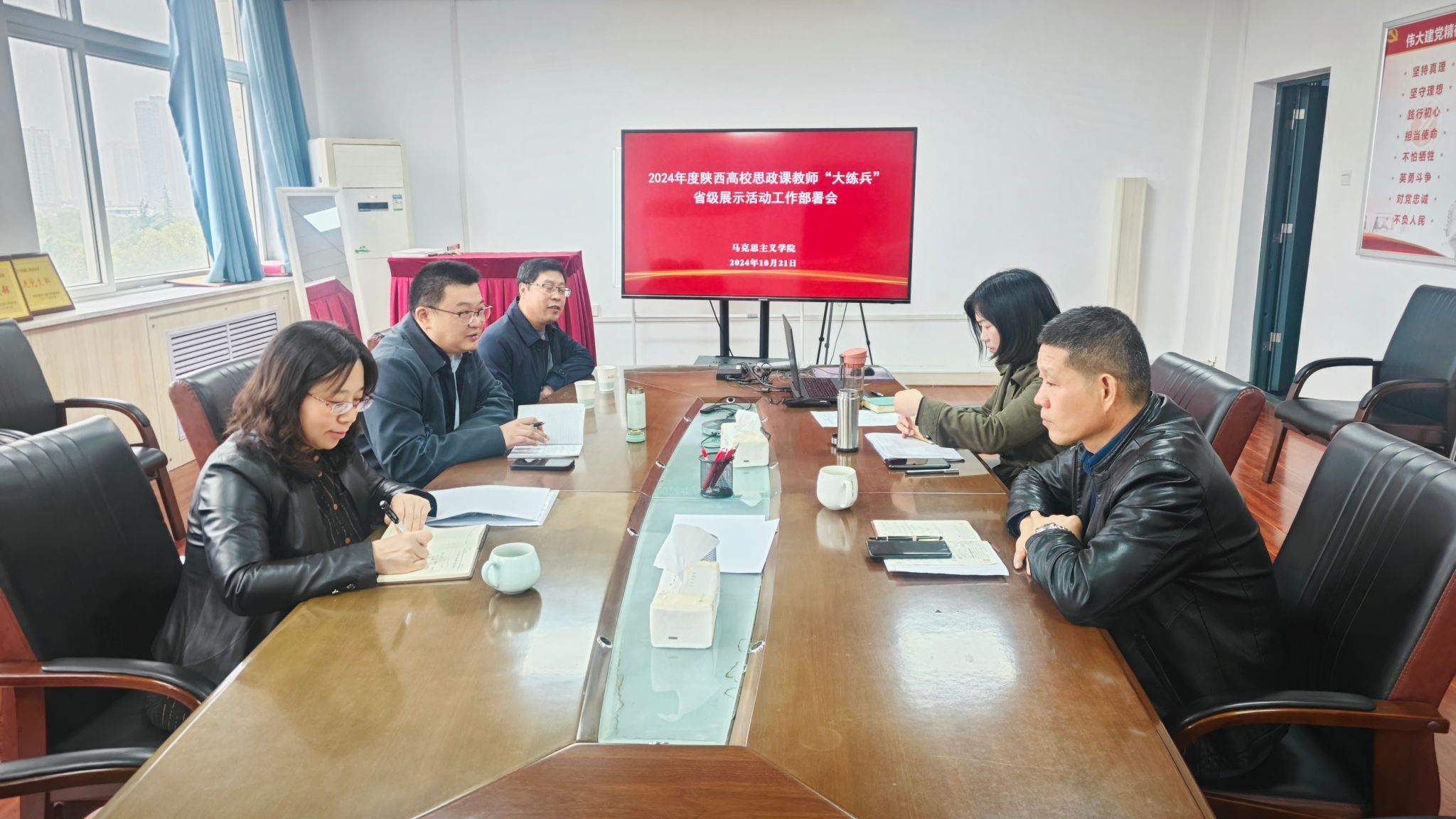 10月21日上午,馬克思主義學(xué)院召開2024年度陜西省高校思政課教師“大練兵”省級展示活動工作部署會,學(xué)院領(lǐng)導(dǎo)班子成員,兩次全國高校思想政治理論課教學(xué)展示獲獎教師左玲參加會議,會議由張海濤院長主持。