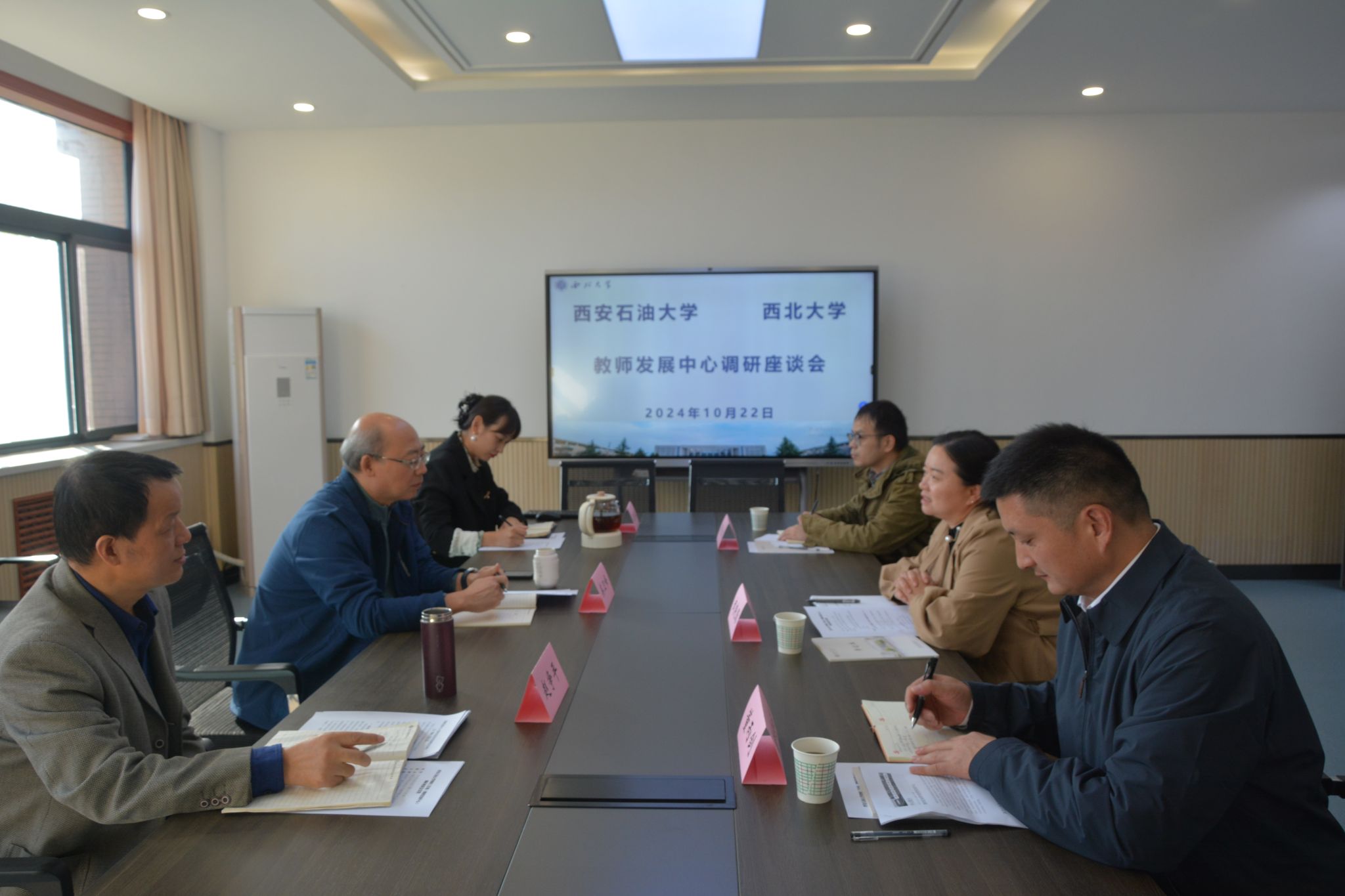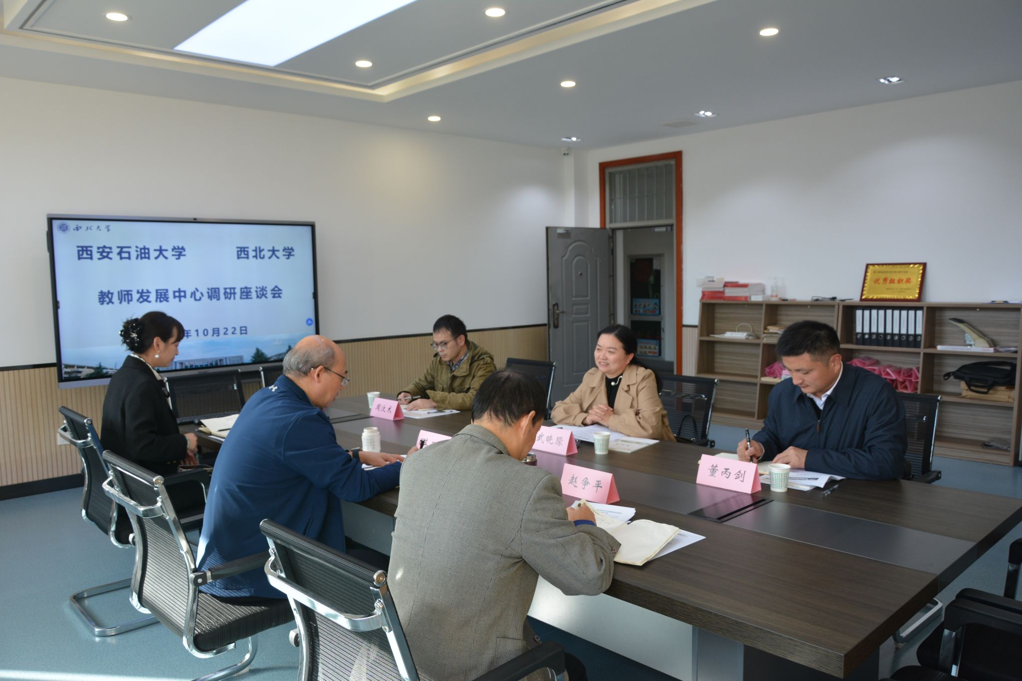 為學(xué)習(xí)借鑒兄弟高校教師發(fā)展中心建設(shè)理念和先進(jìn)經(jīng)驗,提高我校教師發(fā)展中心建設(shè)水平,更好地為廣大教師提供精準(zhǔn)化服務(wù),10月12日下午,我校教師教學(xué)發(fā)展中心主任武曉朦、副主任董丙劍和教師培訓(xùn)科周汶術(shù)一行3人赴上西北大學(xué)教師發(fā)展中心學(xué)習(xí)調(diào)研。西北大學(xué)教師發(fā)展中心主任英衛(wèi)峰、副主任趙爭平、秘書王佳琪參加學(xué)習(xí)調(diào)研會。