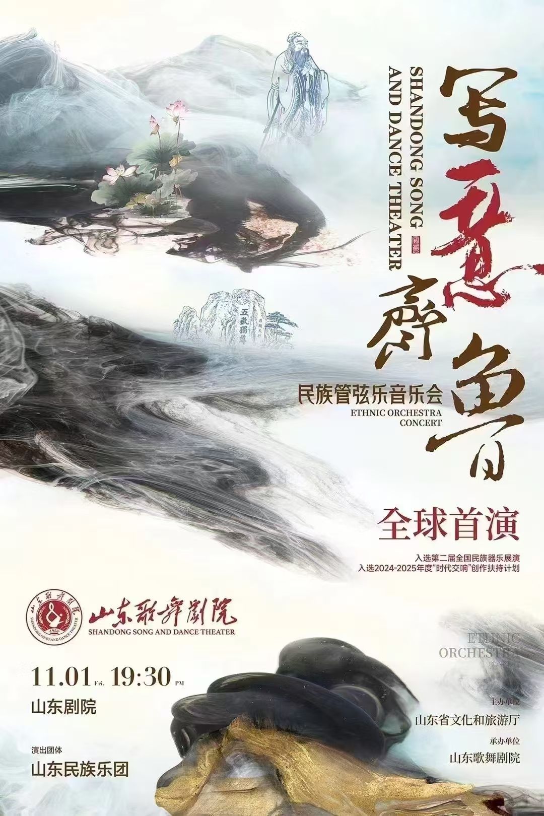 民族管弦樂(lè)《寫(xiě)意齊魯》是山東歌舞劇院慶祝新中國(guó)成立75周年、傳承弘揚(yáng)中華優(yōu)秀傳統(tǒng)文化的重要演出。音樂(lè)會(huì)以“音樂(lè)寫(xiě)意”為主軸,由《泰山頌》《明湖春景》《天下大同》《魯韻》《萬(wàn)年歡》《沂蒙深情》《長(zhǎng)河入海》七個(gè)樂(lè)章構(gòu)成,整場(chǎng)音樂(lè)會(huì)緊扣“一山一水一圣人,時(shí)代交響新山東”的鮮明主題,以齊魯先賢、仁人志士、山水風(fēng)情和時(shí)代風(fēng)采的不同創(chuàng)意,布局謀篇。旋律跨越時(shí)代,音韻穿越時(shí)空,全景式謳歌了新時(shí)代新山東的嶄新風(fēng)貌,全面呈現(xiàn)新中國(guó)成立75年來(lái)輝煌建設(shè)成就的山東篇章。
