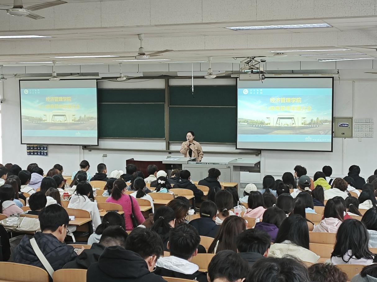 為進(jìn)一步加強(qiáng)學(xué)風(fēng)建設(shè),嚴(yán)肅考試紀(jì)律,增強(qiáng)誠信考試意識,11月6日和11月13日,經(jīng)濟(jì)管理學(xué)院分批次召開2024級年級大會暨考風(fēng)考紀(jì)教育大會。2024級全體本科生參加大會,會議由2024級輔導(dǎo)員張碩主持。