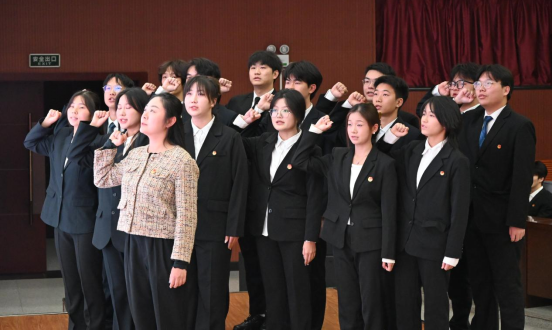學(xué)院團(tuán)委書記王璟帶領(lǐng)新任團(tuán)委委員、新一屆學(xué)生委員會(huì)委員面向國(guó)旗莊嚴(yán)宣誓就職。新任委員代表劉丹陽作工作展望。