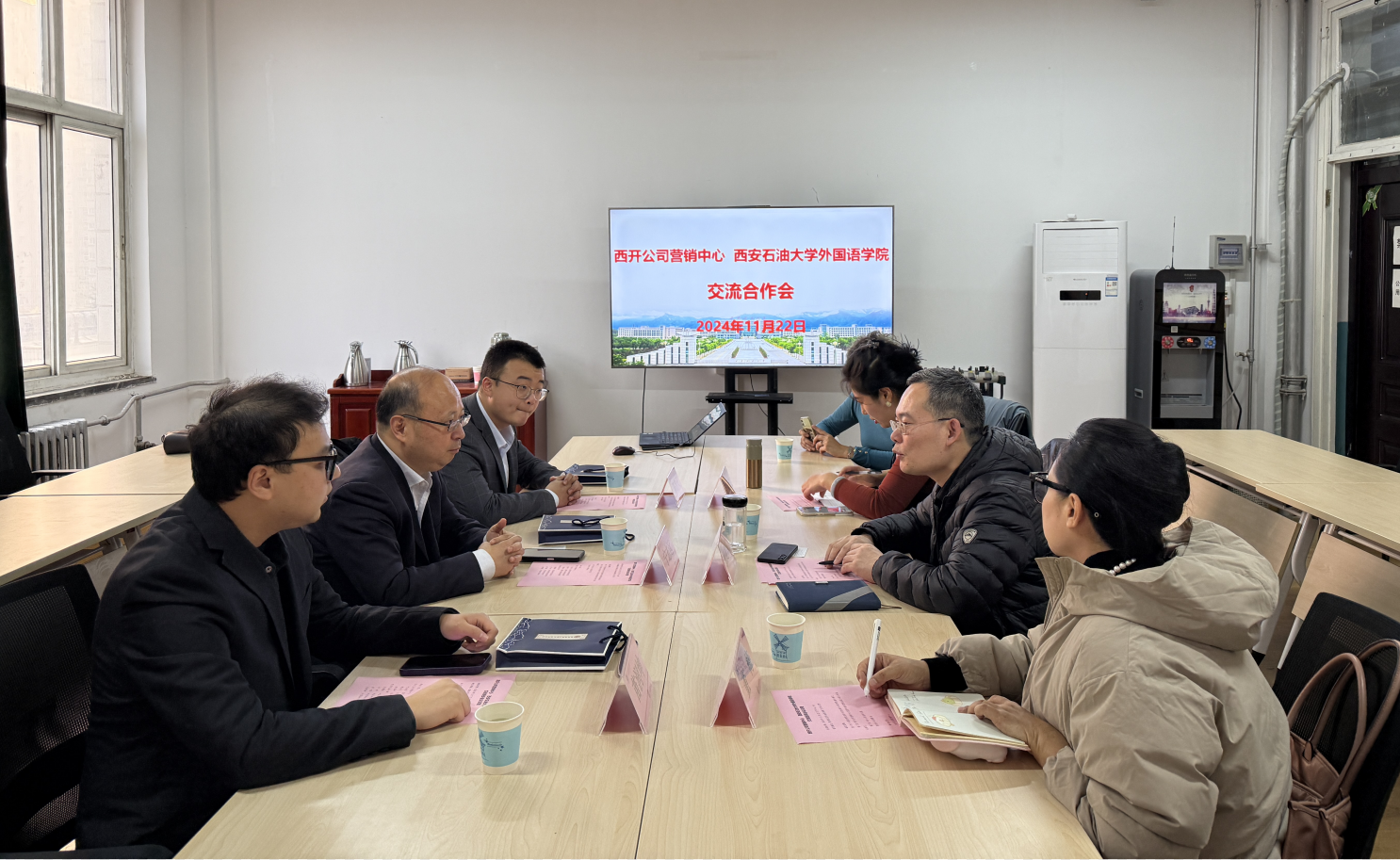 張建高書記首先對西安西電高壓開關(guān)公司的到來表示誠摯歡迎,并介紹了西安石油大學(xué)的基本情況、外國語學(xué)院的專業(yè)特色、師資力量以及近年來在人才培養(yǎng)方面取得的成果,對畢業(yè)生在國際商務(wù)交流中的優(yōu)勢進行了闡述。董梅教授分享了學(xué)院在課程設(shè)置、實踐教學(xué)環(huán)節(jié)與企業(yè)需求對接方面的思考與舉措,強調(diào)學(xué)院致力于培養(yǎng)適應(yīng)時代需求、具有創(chuàng)新精神和實踐能力的復(fù)合型外語人才。