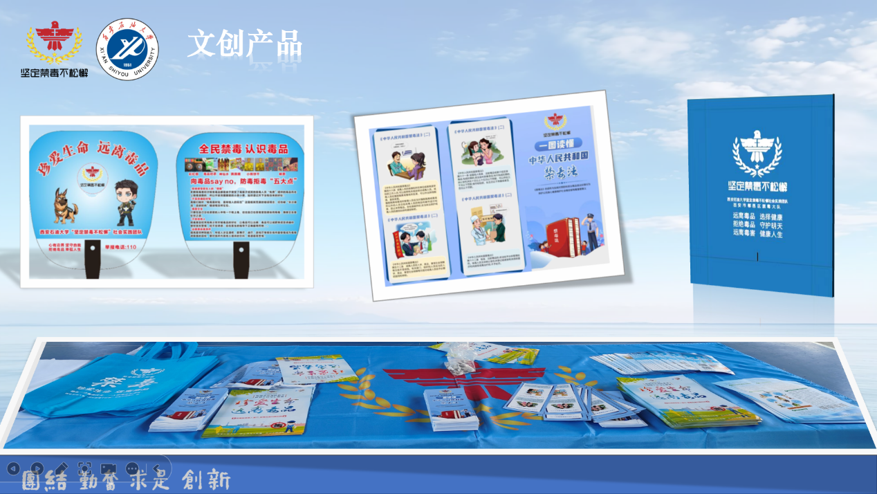 實(shí)踐活動(dòng)開(kāi)始前,為了擴(kuò)大禁毒宣傳效果,團(tuán)隊(duì)成員創(chuàng)作了6幅禁毒宣傳海報(bào),設(shè)計(jì)了印有禁毒知識(shí)的扇子,漫畫(huà)三折頁(yè)以及環(huán)保手提袋等文創(chuàng)產(chǎn)品。