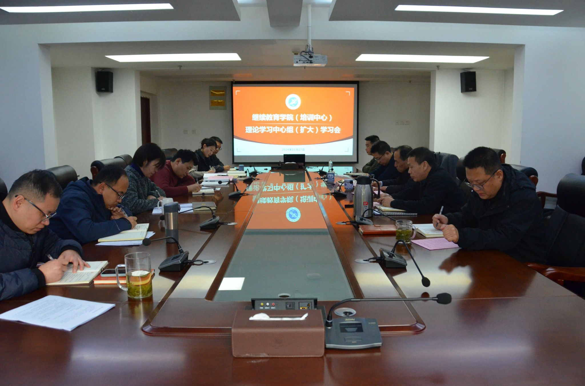 11月27日上午,繼續(xù)教育學(xué)院(培訓(xùn)中心)理論學(xué)習(xí)中心組學(xué)習(xí)會在學(xué)院培訓(xùn)南樓一層會議室召開,校黨委委員、宣傳部部長趙承勝旁聽督導(dǎo)。黨總支書記張凌寒主持會議,學(xué)院理論中心組全體成員參加會議。