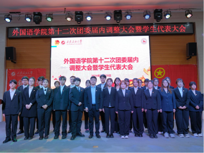 11月28日晚,外國(guó)語(yǔ)學(xué)院第十二次團(tuán)委屆內(nèi)調(diào)整大會(huì)暨學(xué)生代表大會(huì)在鄠邑校區(qū)崇文樓118多功能廳召開(kāi)。校團(tuán)委副書(shū)記王軍策,學(xué)院黨委副書(shū)記邱嶺,學(xué)院團(tuán)委書(shū)記陳浩出席大會(huì),校學(xué)生會(huì)和各兄弟院(系)學(xué)生會(huì)負(fù)責(zé)人,學(xué)院學(xué)生代表共計(jì)110余人參加。