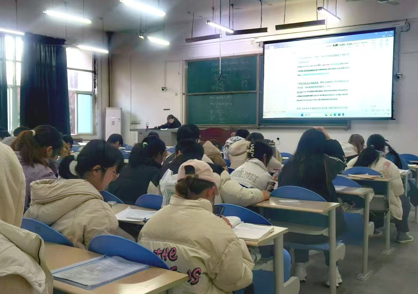 學(xué)院邀請外國語學(xué)院張磊、蔡曉青兩位專業(yè)老師,從11月19日開始,采用“模擬考試+試題解析”的方式系統(tǒng)講授往年四級考試真題或模擬題,學(xué)院2022級、2023級310名本科生分兩個大教室參加四級系列輔導(dǎo)。將“專家老師”的專業(yè)優(yōu)勢和“精準(zhǔn)打靶”的目標(biāo)優(yōu)勢相結(jié)合,在為期一個月的系統(tǒng)學(xué)習(xí)中,有效提高學(xué)生應(yīng)試能力。