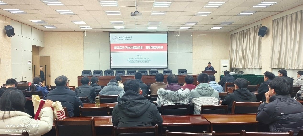 12月10日下午,電子工程學(xué)院邀請(qǐng)西安電子科技大學(xué)劉旭博士在雁塔校區(qū)第三會(huì)議室作了題為《諾獎(jiǎng)啟示下的人工智能大模型技術(shù)-理論與應(yīng)用研究》的學(xué)術(shù)報(bào)告。報(bào)告會(huì)由學(xué)院副院長(zhǎng)任志平主持,共70多名師生現(xiàn)場(chǎng)聆聽了報(bào)告。