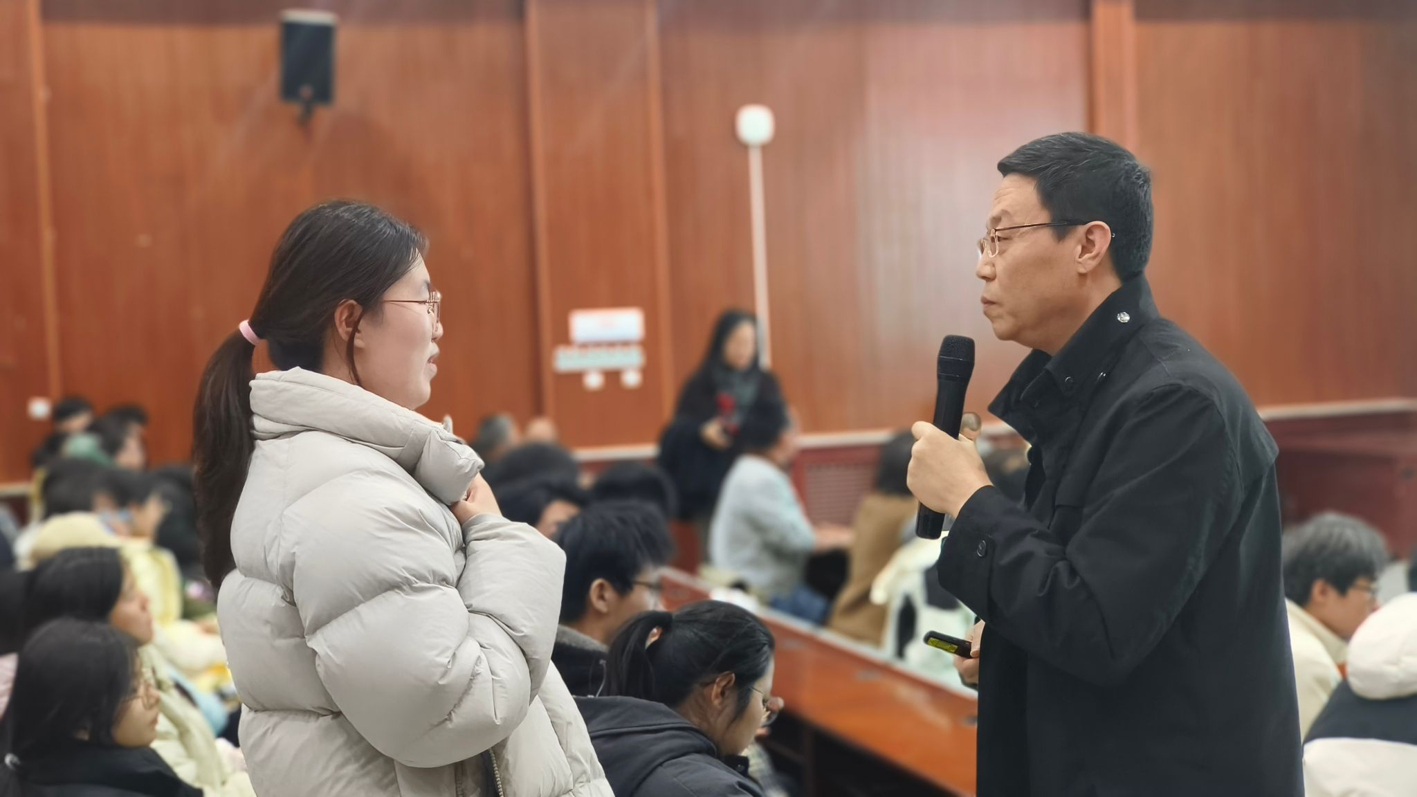 四位老師從多個角度介紹了各專業(yè)的獨(dú)特魅力和廣闊前景,結(jié)合當(dāng)前專業(yè)就業(yè)崗位信息和碩士、博士階段學(xué)習(xí)內(nèi)容,鼓勵2023級計算機(jī)類的同學(xué)們能夠根據(jù)自身興趣特點,找到最適合自己的發(fā)展道路。四位老師并就現(xiàn)場同學(xué)提出的圍繞專業(yè)課程學(xué)習(xí)、就業(yè)前景等問題進(jìn)行了詳細(xì)解答,幫助學(xué)生全面了解各專業(yè)的培養(yǎng)方案、人才培養(yǎng)目標(biāo)、職業(yè)發(fā)展方向和優(yōu)秀畢業(yè)生風(fēng)采。