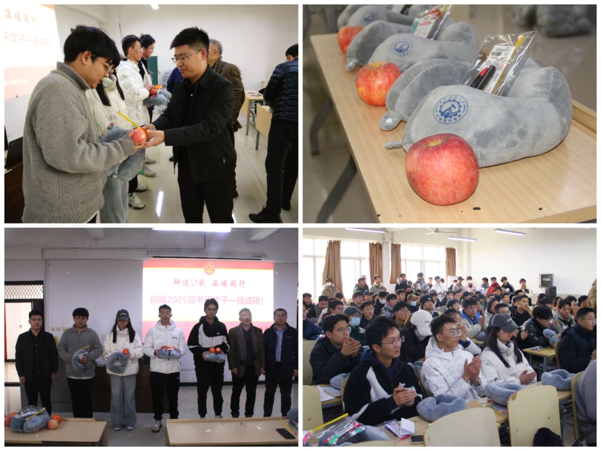 隨著研究生考試的號角即將吹響,12月18日,石油工程學院在鄠邑校區(qū)開物樓427教室開展2025屆參加研考學生慰問活動,激勵考研學子、傳遞溫暖與力量。黨委書記司馬文龍、院長黃海、黨委副書記張浩然,學生工作辦公室全體老師參加活動。