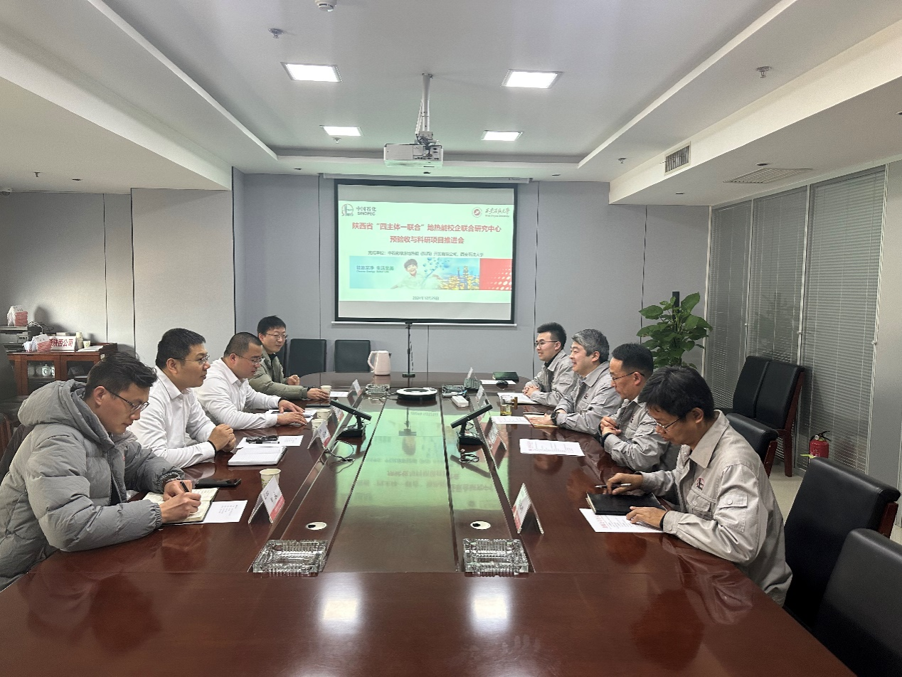 會(huì)上,中石化綠源地?zé)崮?/span>(陜西)開(kāi)發(fā)有限公司匯報(bào)了“四主體一聯(lián)合”地?zé)崮苄F舐?lián)合研究中心建設(shè)情況,雙方就西安熱電砂巖熱儲(chǔ)群采群灌、流動(dòng)取熱機(jī)制、開(kāi)采調(diào)控優(yōu)化等方面進(jìn)行了深入探討和交流。