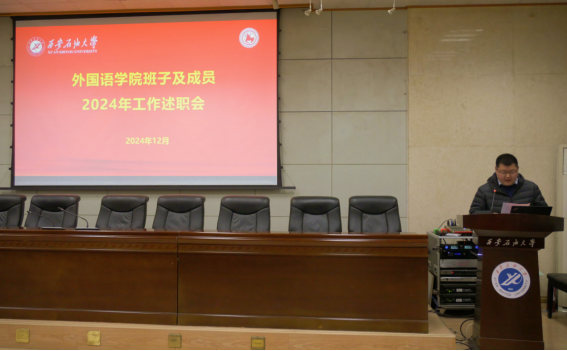 12月27日下午,外國(guó)語(yǔ)學(xué)院在雁塔校區(qū)會(huì)議中心第三會(huì)議室召開領(lǐng)導(dǎo)班子及成員2024年工作述職述廉大會(huì)。學(xué)院黨政領(lǐng)導(dǎo)及全體教職工參加會(huì)議。會(huì)議由學(xué)院黨委書記張建高主持。
