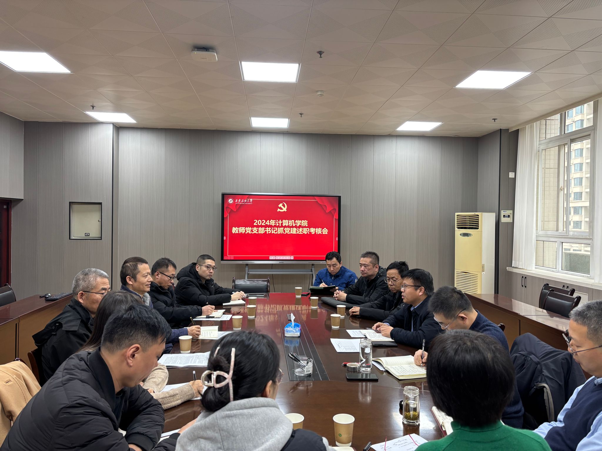 張驍勇在認(rèn)真聽(tīng)取每一位書(shū)記的述職后,對(duì)學(xué)院教師黨支部書(shū)記抓黨建工作進(jìn)行了工作指導(dǎo)。他充分肯定了8位教師黨支部書(shū)記在2024年抓黨建工作中取得的成績(jī),并結(jié)合計(jì)算機(jī)學(xué)院的學(xué)科專業(yè)特點(diǎn)、教學(xué)科研需求、人才培養(yǎng)要求等實(shí)際,對(duì)基層黨支部書(shū)記抓黨建工作進(jìn)行了具體指導(dǎo)。一是要緊跟智能時(shí)代要求和學(xué)校發(fā)展步伐,更新黨支部政治理論學(xué)習(xí)的內(nèi)容。要及時(shí)跟進(jìn)新理論、新方法迭代,積極開(kāi)展大數(shù)據(jù)、人工智能等學(xué)科前沿的學(xué)習(xí),積極探索智慧教育實(shí)踐。二是要把握好對(duì)黨支部開(kāi)展“三會(huì)一課”的基礎(chǔ)性要求,創(chuàng)新性地開(kāi)展工作,扎實(shí)推進(jìn)“分類指導(dǎo)、爭(zhēng)先進(jìn)位”三年行動(dòng)計(jì)劃。基層教師黨支部的黨建工作要為提升教師的素養(yǎng)和能力、提高人才培養(yǎng)質(zhì)量保駕護(hù)航。三是要結(jié)合學(xué)院實(shí)際,加強(qiáng)黨員隊(duì)伍建設(shè)。要加強(qiáng)教師黨員的教育管理監(jiān)督,更要凝聚師生力量,注重在青年教師群眾中發(fā)展黨員。他希望各教師黨支部書(shū)記認(rèn)真總結(jié)經(jīng)驗(yàn),不斷提升黨建工作水平,為實(shí)現(xiàn)學(xué)校黨委提出的“三大目標(biāo)”,營(yíng)造學(xué)校的“三個(gè)氛圍”,推動(dòng)學(xué)校學(xué)院高質(zhì)量發(fā)展貢獻(xiàn)基層組織的力量。
