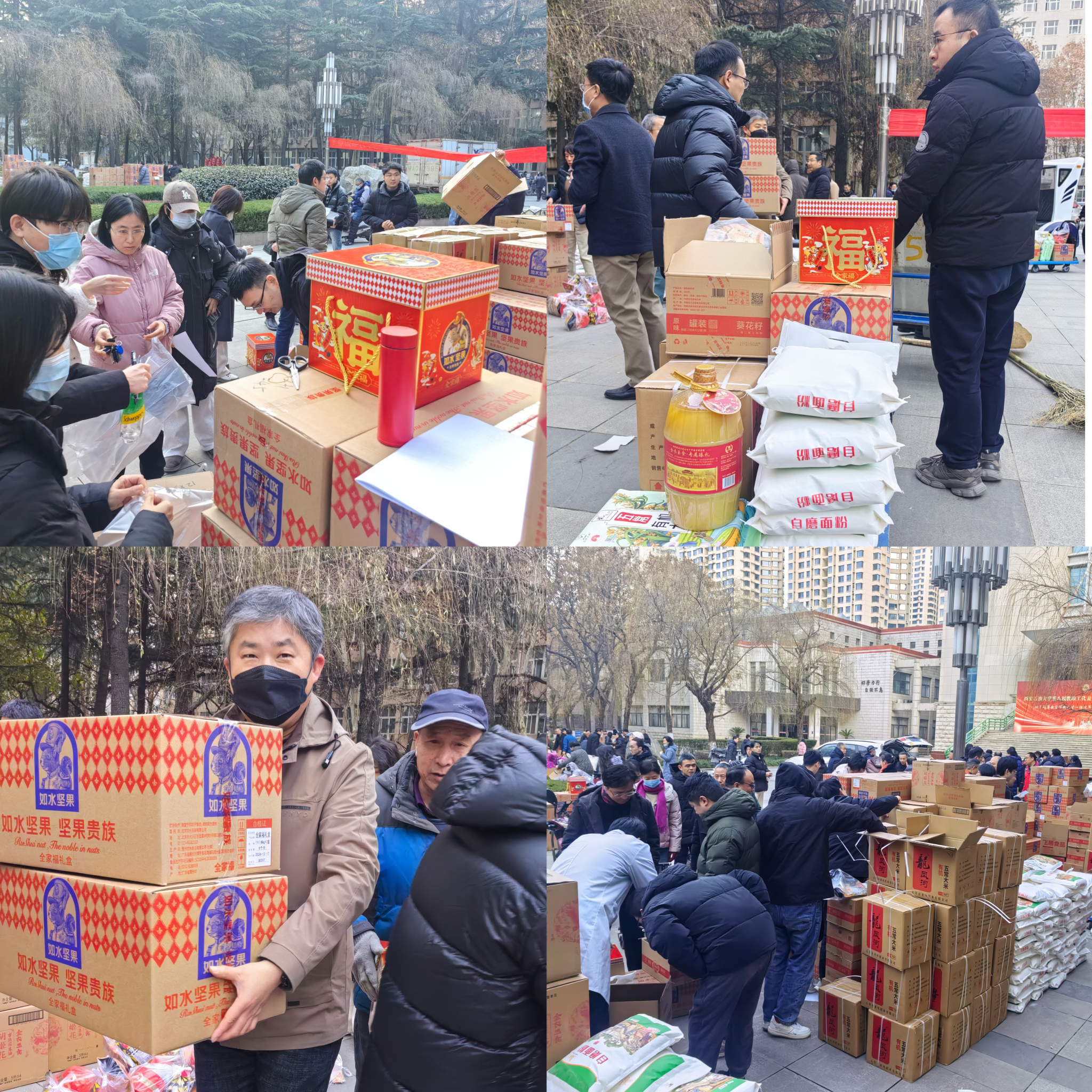 為切實貫徹剛剛閉幕的八屆教代會和九屆工代會會議精神,傳遞學(xué)校對廣大教職工的深切關(guān)懷與誠摯謝意 ,助力全校教職工度過一個歡樂、祥和的寒假與春節(jié),1 14 日,校工會于雁塔校區(qū)忠實廣場開展了節(jié)日福利發(fā)放活動,為辛勤工作在各個崗位上的教職工們送上衷心慰問、深切關(guān)愛以及新春佳節(jié)的美好祝福。
