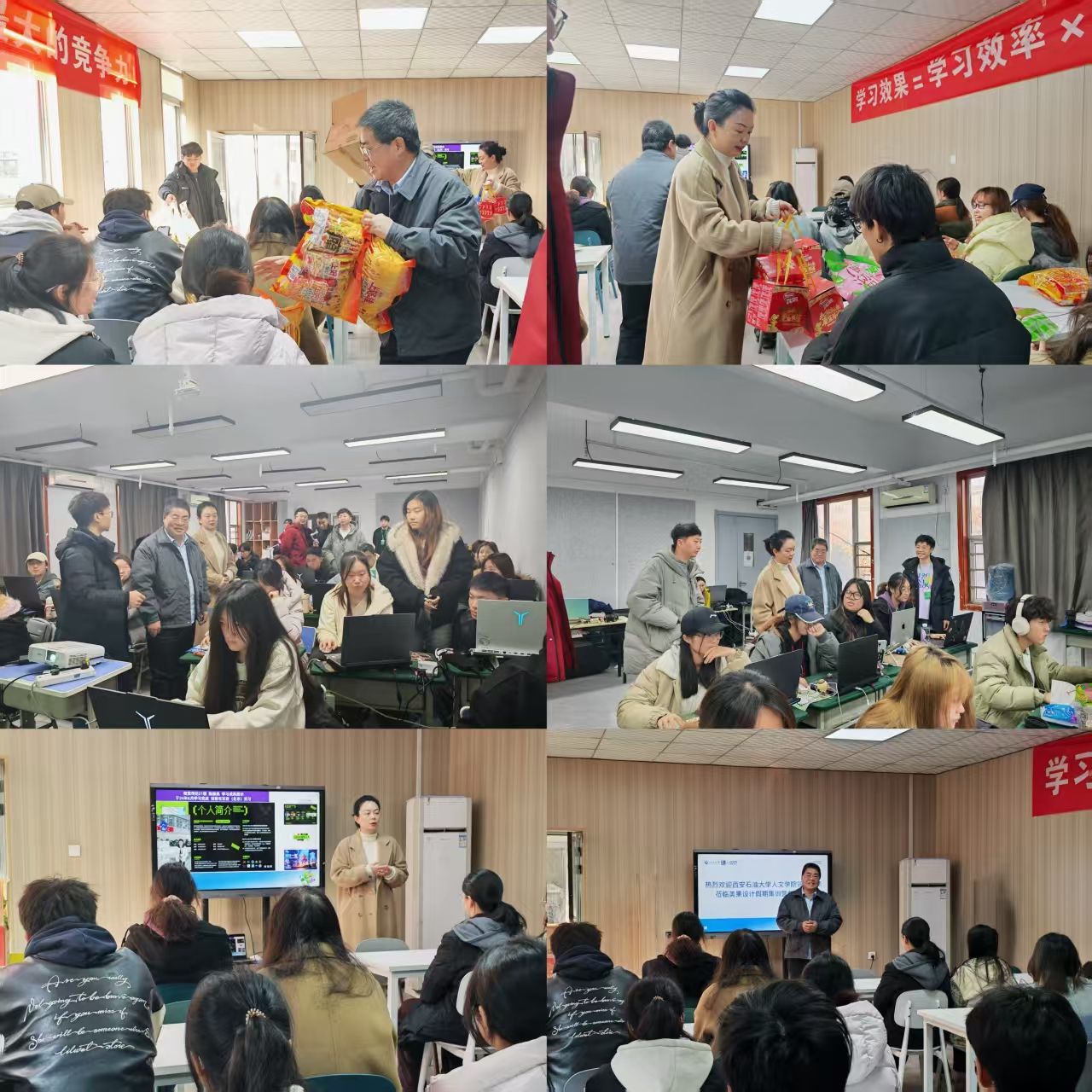 在公司負責人的陪同下,余小勇書記一行參觀了美果設(shè)計的工作環(huán)境以及教學區(qū)域,了解參訓學員近期學習生活情況,并慰問人文學院參加本期集訓營的學生,為學生送去糖果、餅干等慰問品,向?qū)W生介紹了集訓營優(yōu)秀學員的大廠實習經(jīng)歷,鼓勵學生珍惜學習機會,向優(yōu)秀學員看齊。