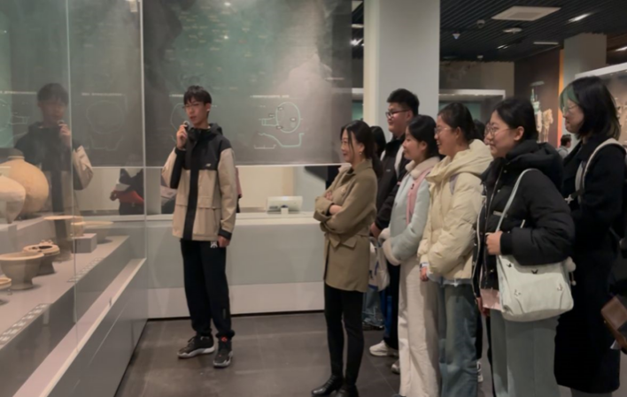 西安博物院是一座集文物收藏、科學(xué)研究、社會教育、園林休閑為一體的綜合性博物館。博物館內(nèi)藏品豐富,涵蓋了從遠(yuǎn)古時期到近現(xiàn)代的歷史文物,是了解西安乃至陜西歷史文化的重要窗口?;顒赢?dāng)天,“英銳實踐團”成員在博物館工作人員的帶領(lǐng)下,對漢代玉杯、金背瑞獸葡萄鏡、秦代玉高足杯等文物進(jìn)行英文講解,了解了西安作為十三朝古都的輝煌歷史和文化底蘊。此次活動旨在通過參觀博物院,提升學(xué)生的英語表達(dá)能力,加深對中華優(yōu)秀傳統(tǒng)文化的理解與傳承,同時助力中華文化的國際傳播。