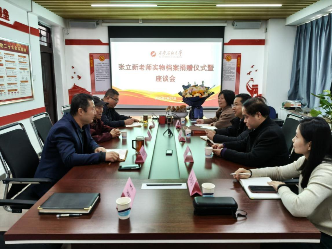 2月27日下午,我校退休教職工、廠61級校友張立新向?qū)W校捐贈1964年中共西安石油學(xué)院委員會頒發(fā)“三好學(xué)生”獎狀、1967年西安石油學(xué)院畢業(yè)證書等16件珍貴實物檔案。檔案捐贈儀式在雁塔校區(qū)工會樓二樓會議室舉行,會議由離退休工作處處長茍金虎主持,校友工作與合作交流處、離退休工作處、檔案館主要負責(zé)人及相關(guān)工作人員參加會議。