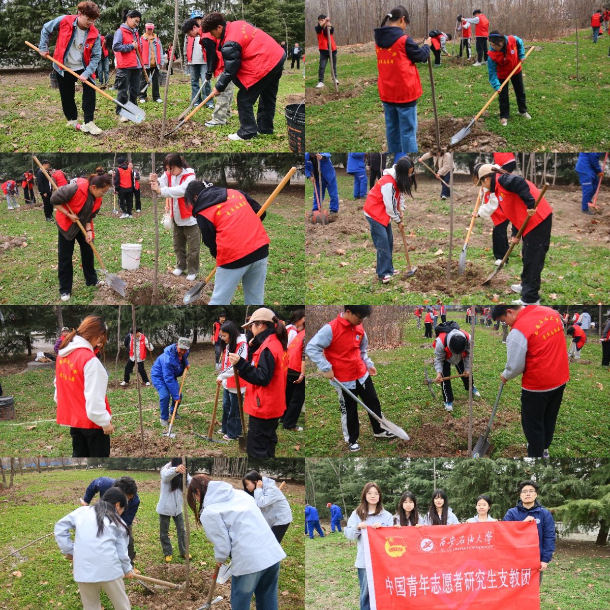 植樹現(xiàn)場,大家配合默契、干勁十足,揮鍬鏟土、扶樹定根、培土圍堰、提桶澆水,每一個(gè)步驟都凝聚著廣大師生的熱情與汗水,在大家的共同努力下,一排排新栽的樹苗在春風(fēng)中挺立,為校園增添了勃勃生機(jī)。