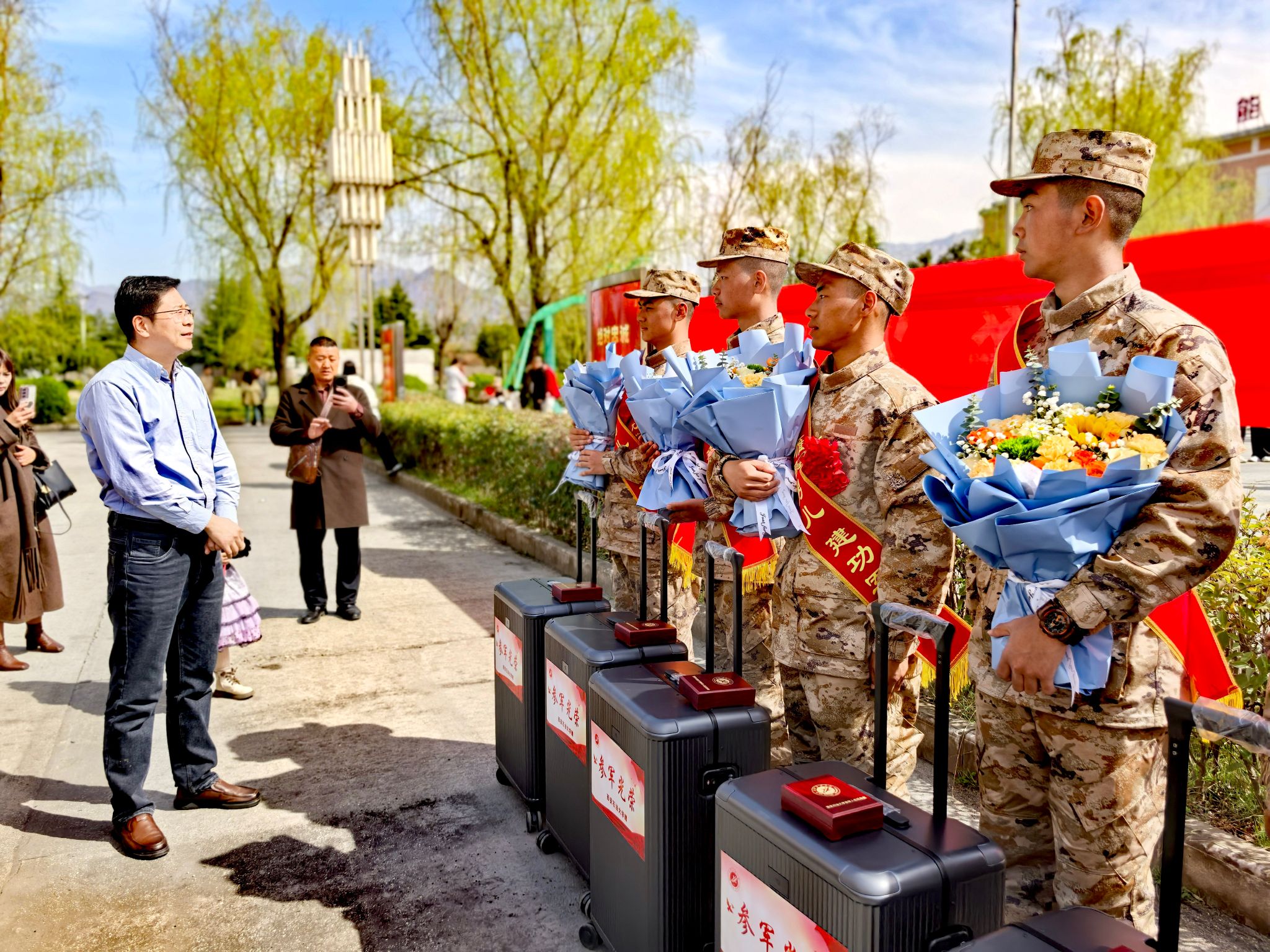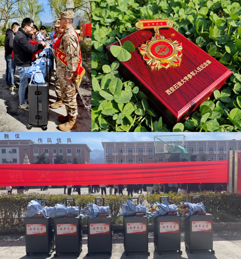 儀式現(xiàn)場,學校為每位入伍學生送上了精心準備的行李箱、紀念胸章、鮮花“青春報國三件禮”,6名學子莊嚴敬禮。儀式結(jié)束后,在場教師、家長、入伍學生進行合影留念,并與入伍學生揮手告別。