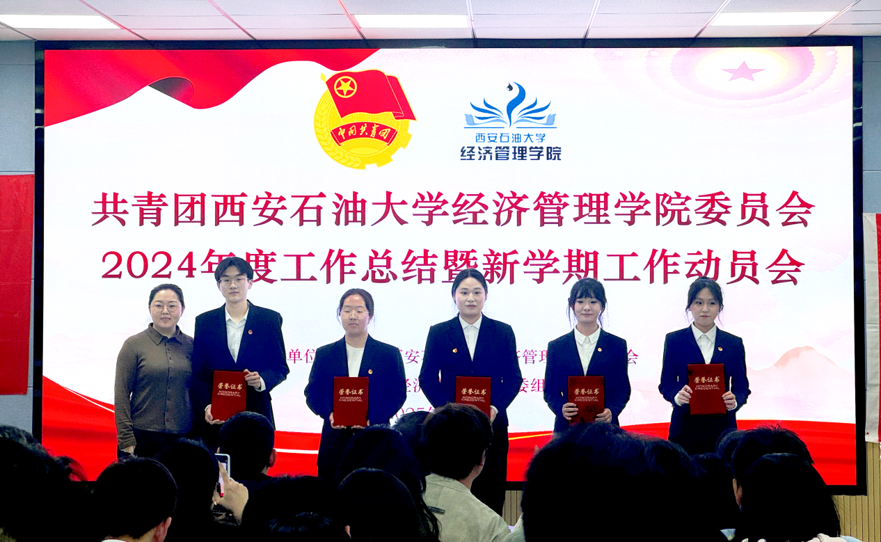 學院團委書記張碩作開場致辭,系統(tǒng)回顧了2024年度團學工作取得的階段性成果,對學院團學工作給予了肯定,對全體團學干部的辛勤付出表示感謝。她指出,團學干部應深入學習共青團西安石油大學第一次代表大會精神,在思想引領、組織建設、校園文化、實踐育人等方面發(fā)揮模范帶頭作用,在工作中保持熱情和積極性,兼顧工作和學習,不斷提升自我,更好地為同學們做實事,為校園建設貢獻力量。學院學生會執(zhí)行主席徐顧銘作2024年度團學工作報告,并對新學期的工作計劃進行介紹。團學干事高蕾作表態(tài)發(fā)言。經(jīng)過評選,院團委組織部、院團委辦公室、院團委學風科創(chuàng)部、院團委體育部、院學生會新媒體宣傳部、經(jīng)管通訊社被評為2024年度團學優(yōu)秀部室。
