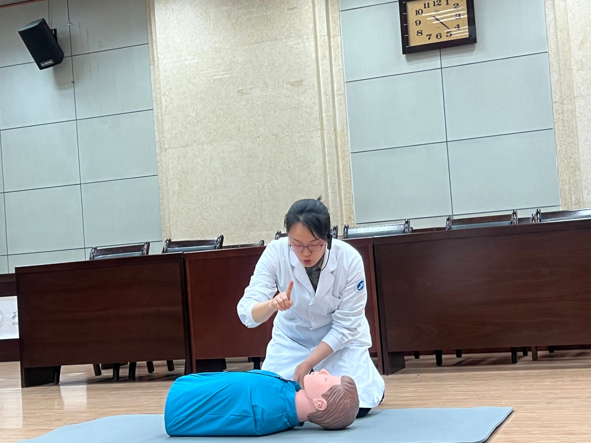 培訓(xùn)現(xiàn)場(chǎng),校醫(yī)院工作人員、陜西省紅十字救護(hù)師資宋彥霞、解姣主講,內(nèi)容主要涵蓋:心肺復(fù)蘇技術(shù)(CPR)和自動(dòng)體外除顫儀(AED)的使用;氣道異物梗阻的應(yīng)急處理(海姆立克急救法);外傷止血與包扎技巧;燒燙傷的科學(xué)處理;溺水現(xiàn)場(chǎng)的應(yīng)急救護(hù);講師們通過(guò)生動(dòng)的案例分析和分步演示,詳細(xì)講解了各類(lèi)突發(fā)情況的處置要點(diǎn),并強(qiáng)調(diào)“黃金救援時(shí)間”的重要性。