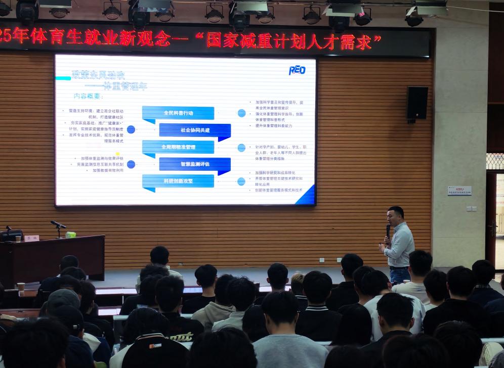 講座中,蘇林院長立足國家“健康中國2030”戰(zhàn)略背景,深入剖析了《國家減重計劃》對體育教育行業(yè)的深遠影響。他指出,隨著經(jīng)濟的快速發(fā)展和人民生活水平的提高,國人的飲食結(jié)構(gòu)和生活方式發(fā)生了巨大變化,超重和肥胖問題日益凸顯。今年全國兩會期間,國家衛(wèi)健委提出實施“體重管理年”三年行動計劃,這必將讓“減重”這件事變得更加重要和火爆,社會必將對科學(xué)減重指導(dǎo)、運動健康管理等專業(yè)人才的需求激增,體育專業(yè)學(xué)生應(yīng)抓住這一政策紅利,拓寬職業(yè)視野,從“傳統(tǒng)體育教育”向“大健康服務(wù)領(lǐng)域”延伸。