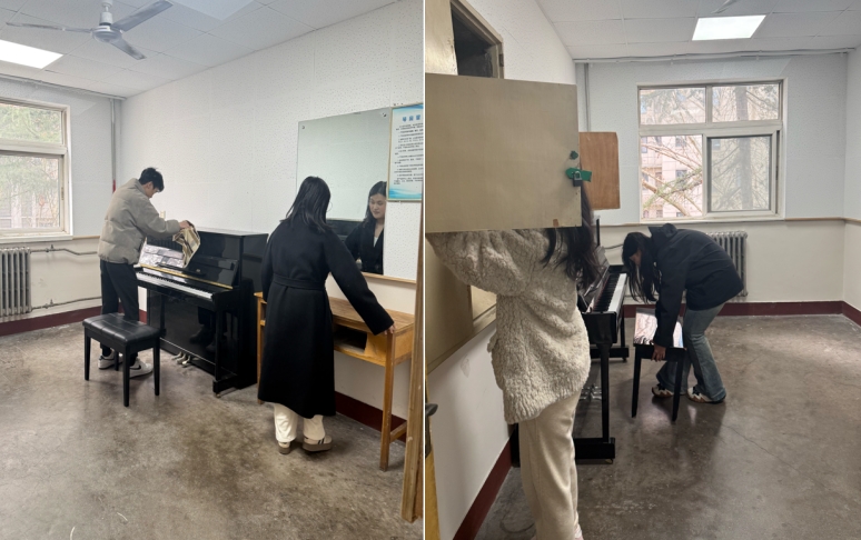 我校音樂系組織學生以班級為單位,開展琴房清掃活動?;顒忧?,同學們提前準備好掃把、拖把、抹布、水桶等清潔工具,大家分工明確,掃地拖地、清理地面、擦拭琴鍵琴身以及桌椅等,不放過任何一個衛(wèi)生死角。在清掃過程中,同學們充分發(fā)揮不怕臟、不怕累的精神,認真仔細地完成每一項任務,為同學們營造了一個更加整潔、舒適的學習環(huán)境。