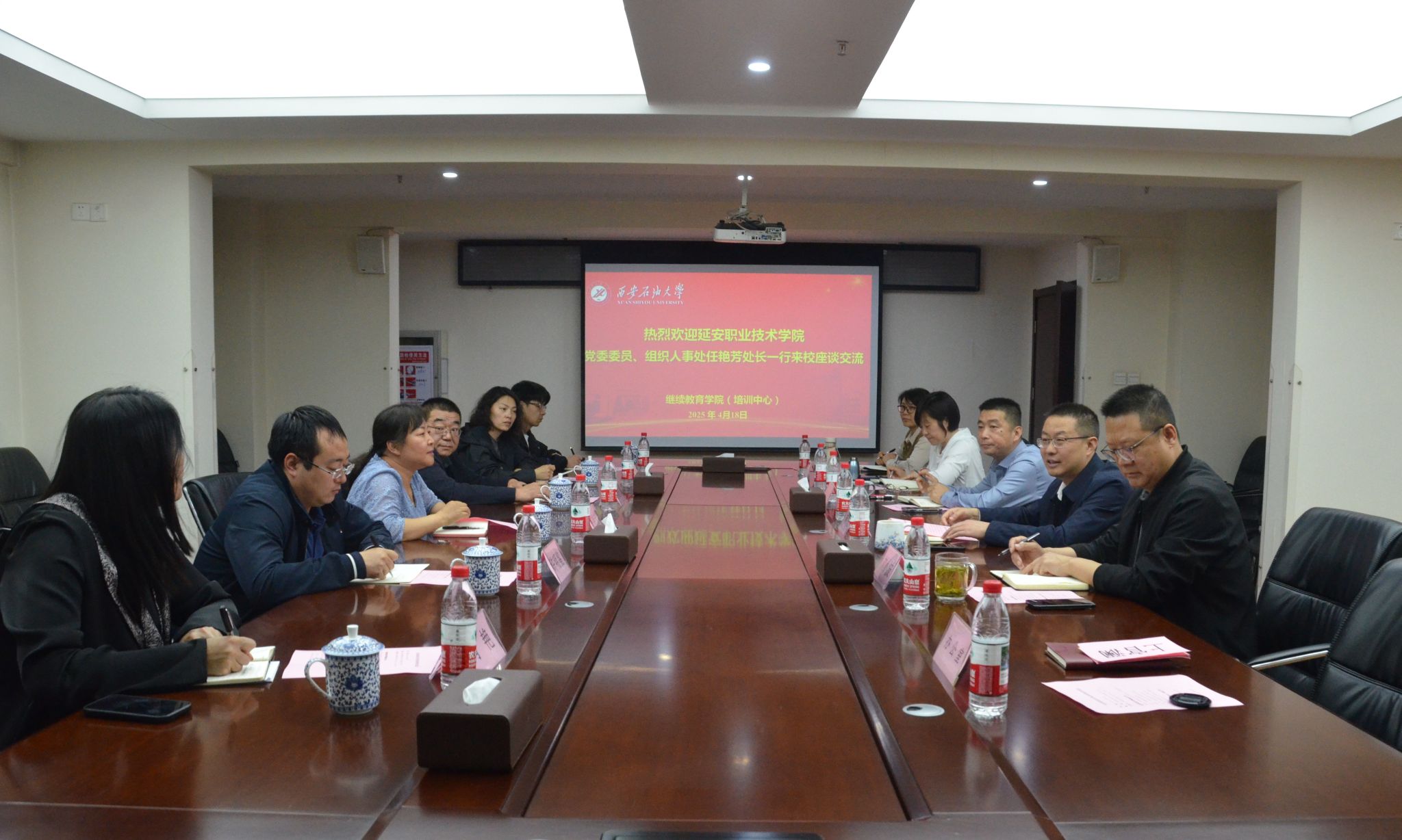 為共同推動繼續(xù)教育事業(yè)發(fā)展,加強校際間的合作與交流,4月18日下午,延安職業(yè)技術(shù)學院黨委委員、組織人事處處長(統(tǒng)戰(zhàn)部部長)任艷芳、繼續(xù)教育學院院長惠延東等一行6人來我校繼續(xù)教育學院(培訓中心)座談交流,就學歷教育、培訓教育、同等學力申碩等方面進行了深入的交流。