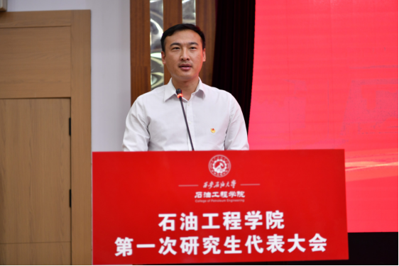 石油工程學(xué)院黨委書記司馬文龍代表學(xué)院黨委向大會的勝利召開表示熱烈祝賀,向全體與會代表致以親切問候。他指出,本次大會是以習(xí)近平新時代中國特色社會主義思想為指導(dǎo),深入學(xué)習(xí)貫徹黨的二十屆三中全會和全國教育大會精神,深刻領(lǐng)會習(xí)近平總書記關(guān)于青年工作的重要思想,認(rèn)真學(xué)習(xí)學(xué)校第三次黨代會精神的一次重要的大會。大會的主要任務(wù)是討論今后一個時期研究生會工作的目標(biāo)方向,更好地完善研究生培養(yǎng)體系,搭建研究生交流溝通平臺,促進(jìn)研究生成長成才,團(tuán)結(jié)帶領(lǐng)全院研究生為建成特色鮮明的高水平教學(xué)研究型大學(xué)積極作為,為實現(xiàn)中華民族偉大復(fù)興中國夢貢獻(xiàn)青春力量。他強(qiáng)調(diào),與會代表要以嚴(yán)謹(jǐn)求實的態(tài)度,認(rèn)真履行職責(zé),圓滿完成大會的各項任務(wù),把本次大會開成民主、和諧、團(tuán)結(jié)、奮進(jìn)的大會