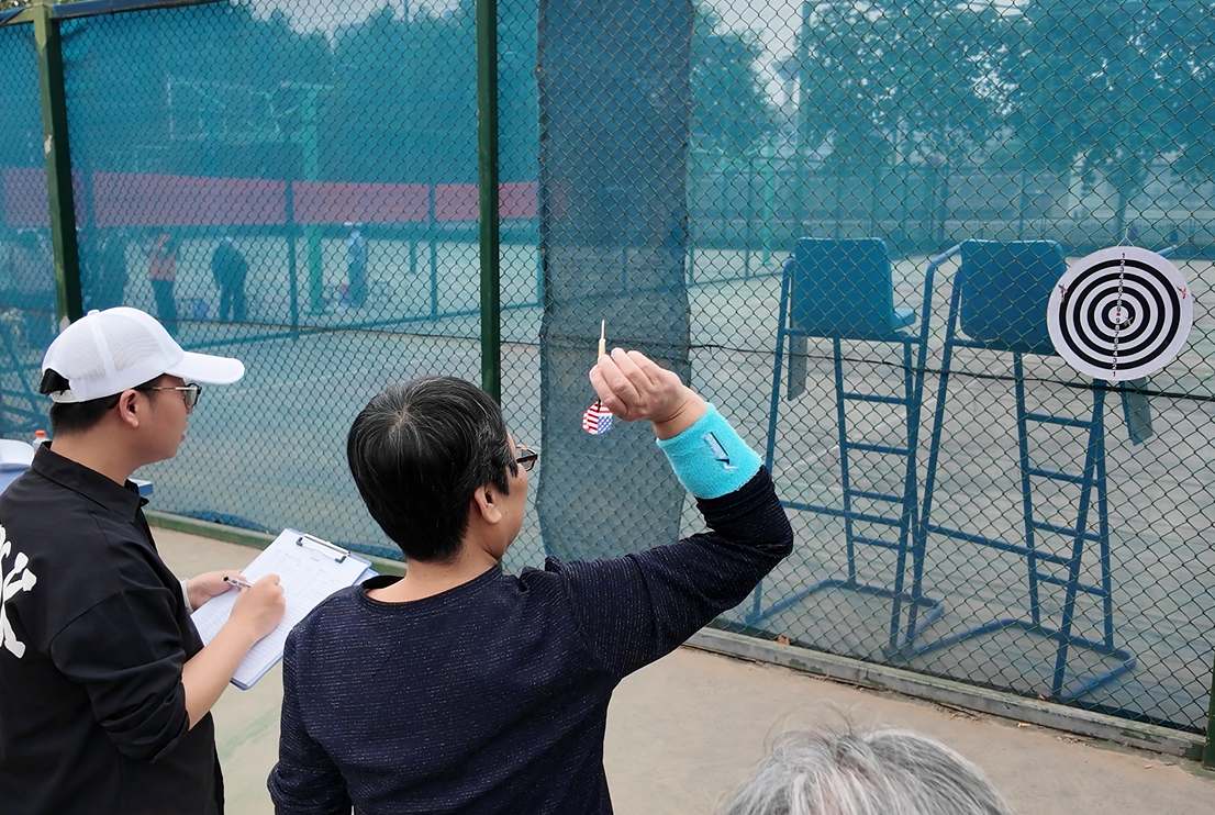 此次趣味運(yùn)動會項(xiàng)目豐富多樣,充分考慮老同志們的身體狀況和興趣愛好。門球奪標(biāo)考驗(yàn)精準(zhǔn)與策略,老同志們手握球桿,屏氣凝神,專注瞄準(zhǔn)目標(biāo);套圈游戲充滿童趣,大家全神貫注,將手中的套圈奮力拋出,試圖套住心儀的獎品;保齡球項(xiàng)目中,老同志們動作利落,隨著球滾動,瓶倒下的瞬間,歡呼聲此起彼伏;網(wǎng)球投準(zhǔn)、飛鏢投準(zhǔn)、定點(diǎn)投籃等項(xiàng)目也深受歡迎,大家各展身手,現(xiàn)場氣氛熱烈。