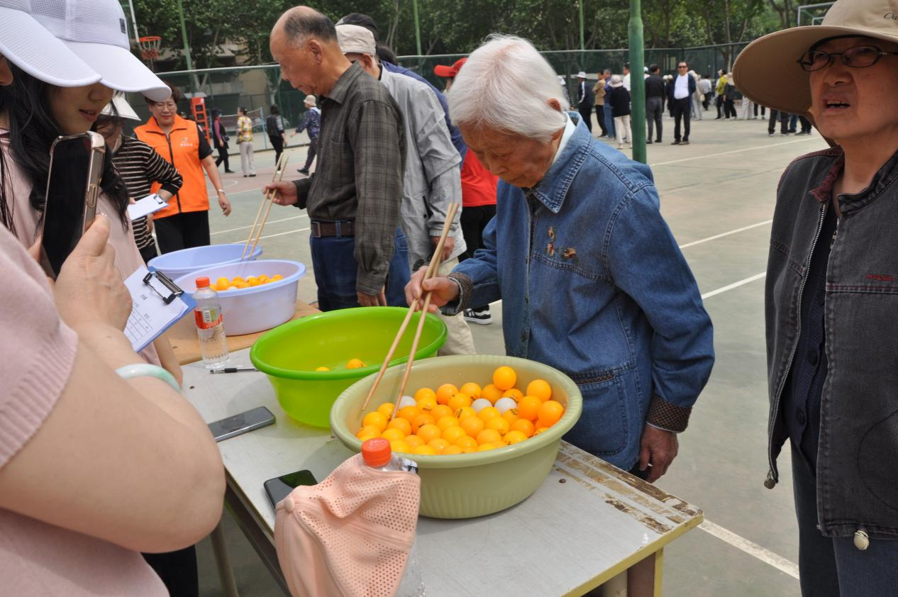 為關(guān)愛高齡老同志,運(yùn)動會特別為 80 歲以上的老同志增設(shè)筷子夾球和擲乒乓球項(xiàng)目。這些項(xiàng)目既充滿趣味,又能鍛煉手部精細(xì)動作和身體協(xié)調(diào)性。老同志們興致勃勃地參與其中,臉上洋溢著燦爛的笑容,現(xiàn)場洋溢著歡樂和諧的氛圍。