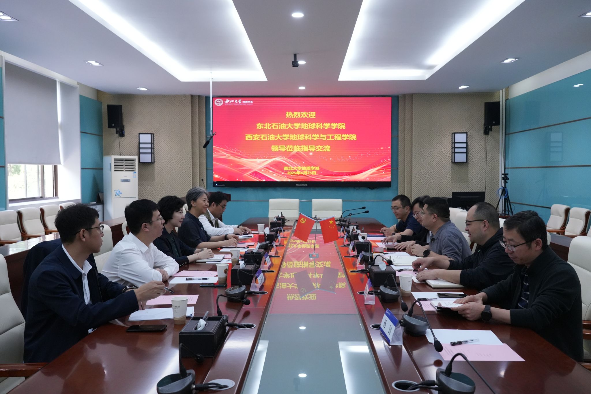 為深入貫徹落實黨的二十屆三中全會和全國教育大會精神,加強拔尖人才培養(yǎng),4月25日上午,地球科學與工程學院黨委書記高黎、院長宋立軍,聯(lián)合東北石油大學地球科學學院調研組,赴西北大學地質學系開展“學科交叉賦能人才培養(yǎng),黨建引領推動高質量發(fā)展”專題調研,聚焦新時代地質學科建設、拔尖創(chuàng)新人才培養(yǎng)體系構建及黨建業(yè)務深度融合等,進一步探討石油地學領域校際協(xié)同發(fā)展新模式。東北石油大學地球科學學院黨委書記韋丹寧、院長孫雨、副院長王海學,西北大學地質學系黨委副書記李政倫,副主任龍曉平、王建強、李青彥等參加會議。會議由西北大學地質學系黨委書記陳峰主持。