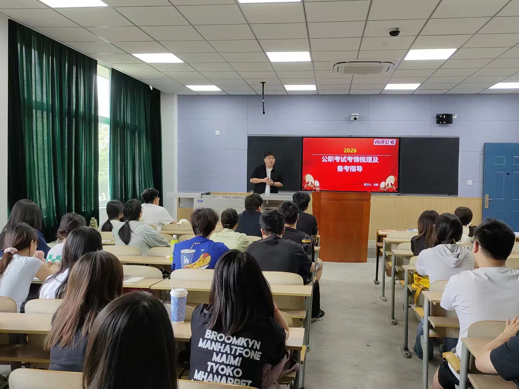為助力2026屆畢業(yè)生科學(xué)備戰(zhàn)公務(wù)員考試,精準(zhǔn)把握考情趨勢(shì),提升應(yīng)試能力。5月7日下午,人文學(xué)院在博覽樓A105舉辦“2026年公職考試考情梳理及備考指導(dǎo)”專(zhuān)題講座。本次活動(dòng)由人文學(xué)院聯(lián)合尚研公考共同發(fā)起,人文學(xué)院黨委副書(shū)記盛丹、尚研公考名師王蘅、2021級(jí)輔導(dǎo)員張馨元出席活動(dòng),人文學(xué)院與經(jīng)管學(xué)院意向考公學(xué)生到場(chǎng)參與。