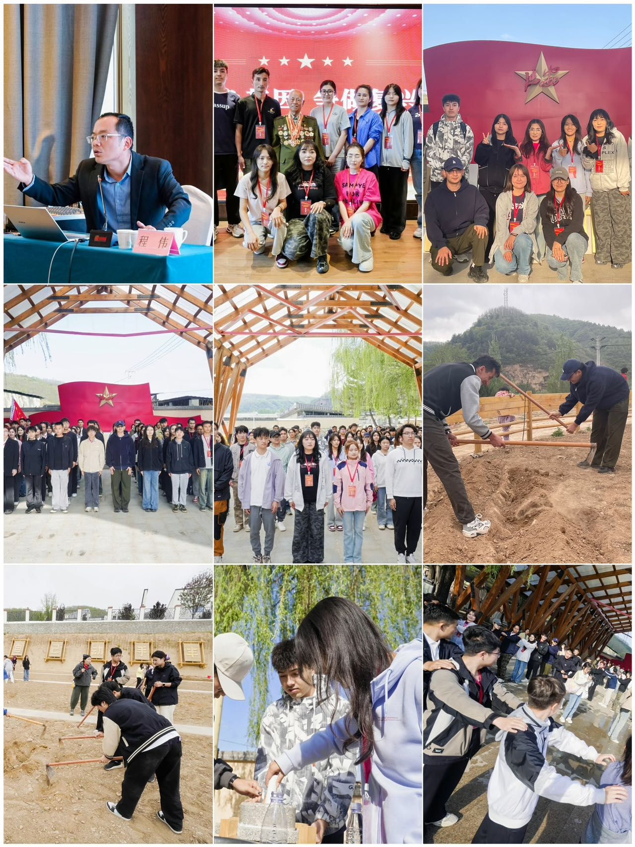 5月9日,延安干部學(xué)院程偉以《沿著總書(shū)記的足跡悟思想》為題開(kāi)展專題講座,通過(guò)鮮活案例與深度解讀,引導(dǎo)學(xué)生深刻領(lǐng)會(huì)習(xí)近平總書(shū)記重要思想的核心要義。在隨后的訪談式教學(xué)環(huán)節(jié),我校學(xué)生有幸與一等功臣呼榮碧進(jìn)行交流并合影留念,近距離聆聽(tīng)英雄故事,從中汲取源源不斷的奮進(jìn)力量?;顒?dòng)期間,別具匠心地開(kāi)設(shè) “南泥灣精神”實(shí)踐課堂,同學(xué)們走進(jìn)田間地頭,親身參與農(nóng)耕勞作,在辛勤的汗水揮灑中,切身體驗(yàn) “自力更生、艱苦奮斗” 的精神內(nèi)涵。