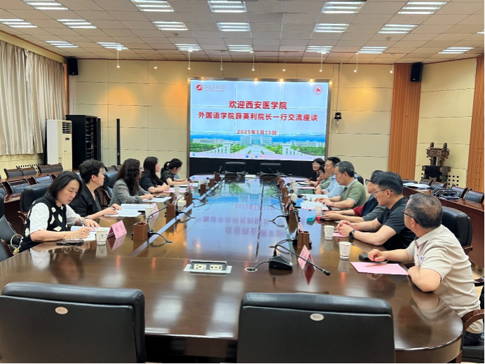 為加強(qiáng)校際合作、促進(jìn)外語(yǔ)學(xué)科高質(zhì)量發(fā)展,5月15日下午西安醫(yī)學(xué)院外國(guó)語(yǔ)學(xué)院院長(zhǎng)薛英利一行5人蒞臨我校外國(guó)語(yǔ)學(xué)院座談交流。交流會(huì)在雁塔校區(qū)會(huì)議中心第二會(huì)議室召開(kāi)。雙方學(xué)院黨政領(lǐng)導(dǎo)和骨干教師代表圍繞多個(gè)關(guān)鍵議題展開(kāi)深入探討,共商行業(yè)院校外語(yǔ)學(xué)科建設(shè)新路徑。