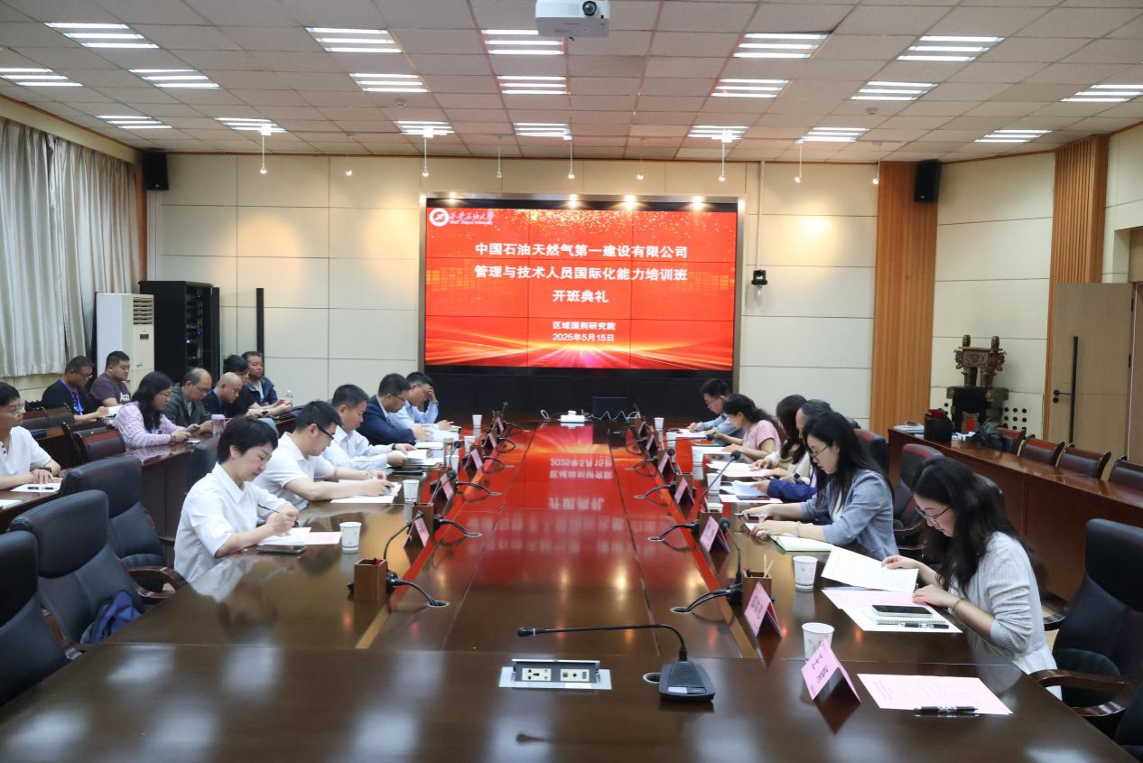 5月15日上午,區(qū)域國(guó)別研究院在雁塔校區(qū)會(huì)議中心第二會(huì)議室舉行了中國(guó)石油天然氣第一建設(shè)有限公司管理與技術(shù)人員國(guó)際化能力培訓(xùn)班開班儀式。中國(guó)石油天然氣第一建設(shè)有限公司總經(jīng)理助理兼國(guó)際事業(yè)部經(jīng)理張俊生、第四工程分公司黨工委書記楊東峰、第二工程分公司總工程師顧長(zhǎng)虹、區(qū)域國(guó)別研究院執(zhí)行院長(zhǎng)劉輝、培訓(xùn)班部分任課教師和全體學(xué)員參加了開班儀式。開班儀式由區(qū)域國(guó)別研究院辦公室副主任陶李主持。